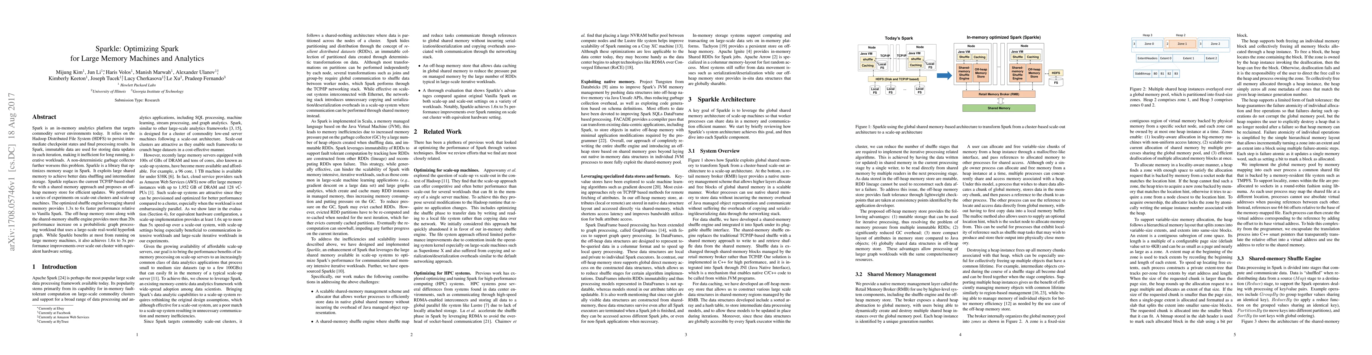 Sparkle optimizes Spark for large memory machines by enhancing memory usage through shared memory shuffling and an off-heap memory store, achieving up to 20x performance improvements for large-scale analytics workloads. It also provides 1.6x to 5x performance gains on scale-out clusters.
