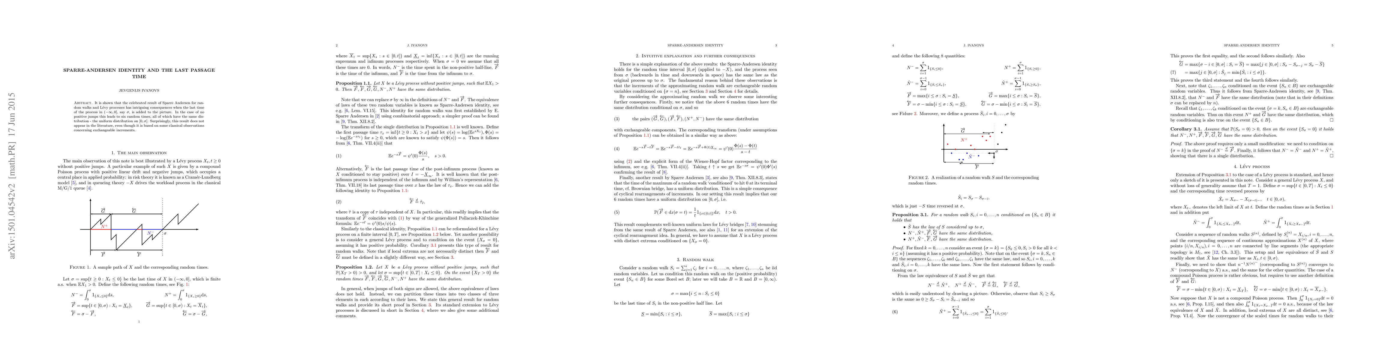 It is shown that the celebrated result of Sparre Andersen for random walks and L\'evy processes has intriguing consequences when the last time of the process in $(-\infty,0]$, say $\sigma$, is added to the picture. In the case of no positive jumps this leads to six random times, all of which have the same distribution - the uniform distribution on $[0,\sigma]$. Surprisingly, this result does not appear in the literature, even though it is based on some classical observations concerning exchangeable increments.