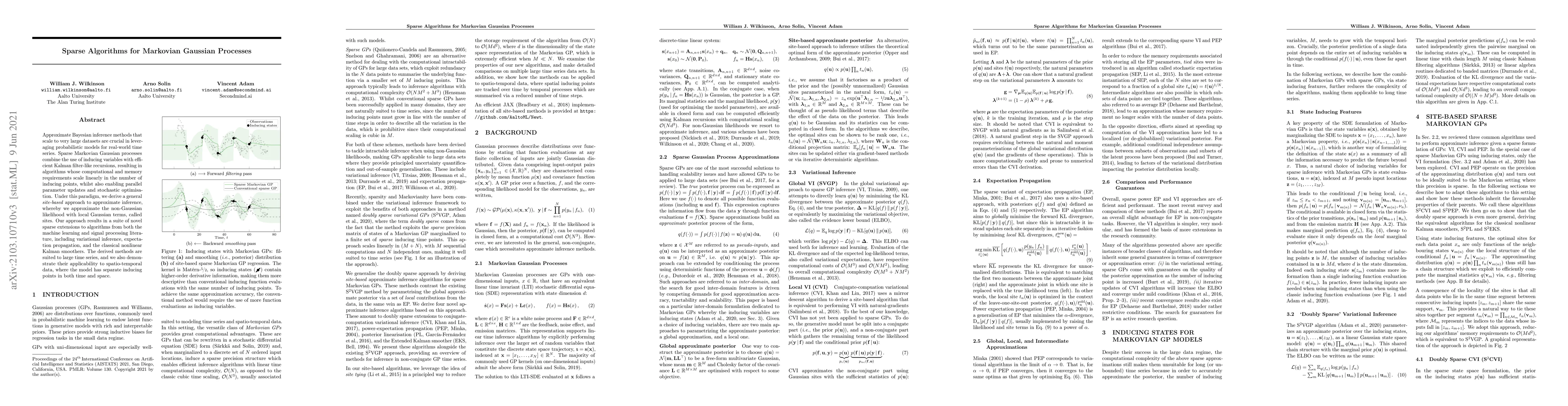 This paper introduces sparse Markovian Gaussian processes that utilize inducing variables and efficient recursions to scale Bayesian inference for large datasets. It presents a site-based approach for approximate inference, enabling linear scaling with inducing points and parallel updates, and extends variational inference, expectation propagation, and Kalman smoothers for large time series and spatio-temporal data.