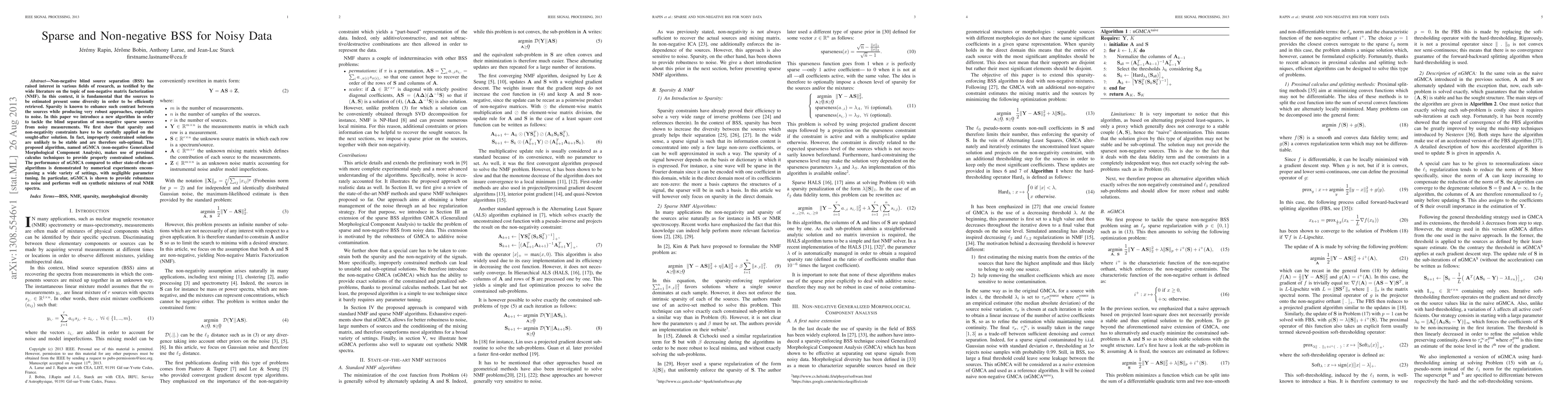 Non-negative blind source separation (BSS) has raised interest in various fields of research, as testified by the wide literature on the topic of non-negative matrix factorization (NMF). In this context, it is fundamental that the sources to be estimated present some diversity in order to be efficiently retrieved. Sparsity is known to enhance such contrast between the sources while producing very robust approaches, especially to noise. In this paper we introduce a new algorithm in order to tackle the blind separation of non-negative sparse sources from noisy measurements. We first show that sparsity and non-negativity constraints have to be carefully applied on the sought-after solution. In fact, improperly constrained solutions are unlikely to be stable and are therefore sub-optimal. The proposed algorithm, named nGMCA (non-negative Generalized Morphological Component Analysis), makes use of proximal calculus techniques to provide properly constrained solutions. The performance of nGMCA compared to other state-of-the-art algorithms is demonstrated by numerical experiments encompassing a wide variety of settings, with negligible parameter tuning. In particular, nGMCA is shown to provide robustness to noise and performs well on synthetic mixtures of real NMR spectra.