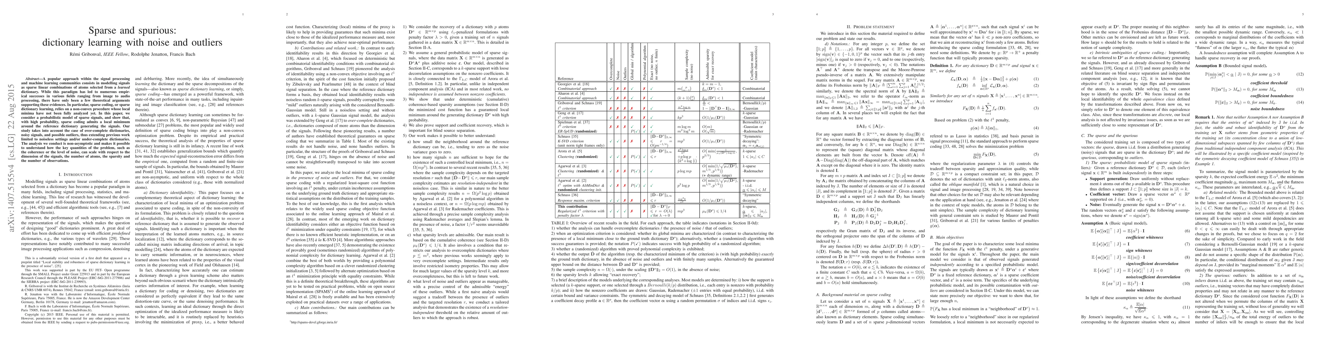 Researchers show that sparse coding with noise and outliers has a local minimum, improving our understanding of its behavior in real-world settings. They also provide guidelines on how key quantities can scale with respect to signal dimension and dictionary size.