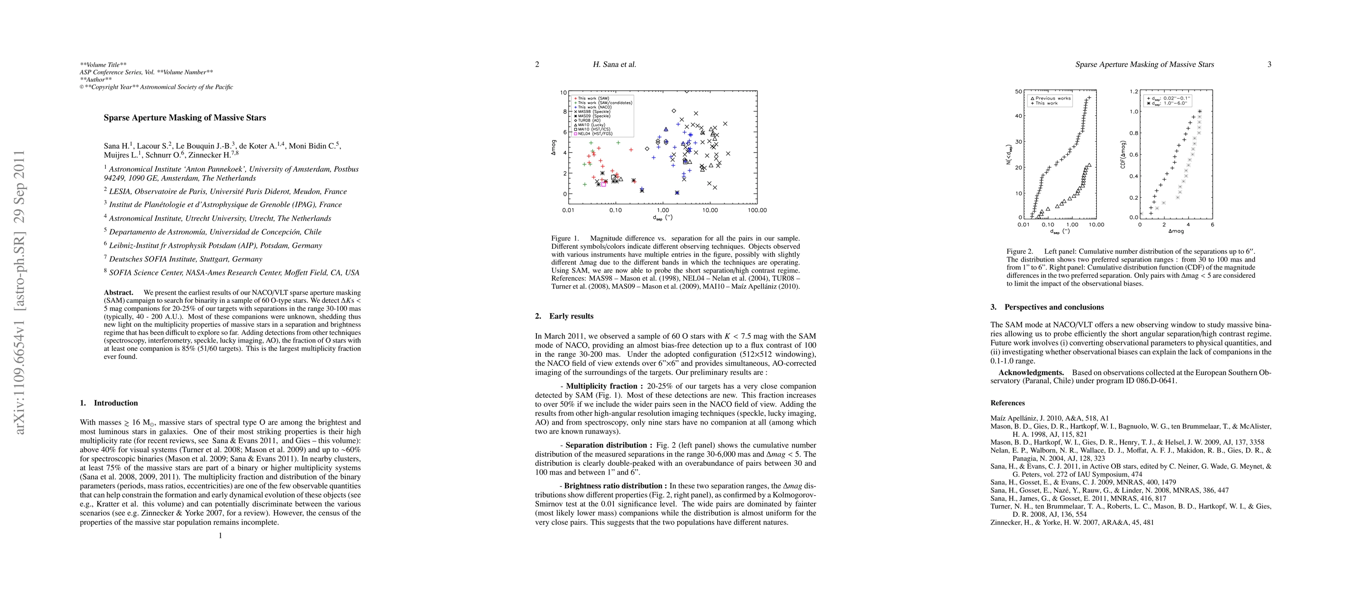We present the earliest results of our NACO/VLT sparse aperture masking (SAM) campaign to search for binarity in a sample of 60 O-type stars. We detect Delta Ks < 5 mag companions for 20-25% of our targets with separations in the range 30-100 mas (typically, 40 - 200 A.U.). Most of these companions were unknown, shedding thus new light on the multiplicity properties of massive stars in a separation and brightness regime that has been difficult to explore so far. Adding detections from other techniques (spectroscopy, interferometry, speckle, lucky imaging, AO), the fraction of O stars with at least one companion is 85% (51/60 targets). This is the largest multiplicity fraction ever found.