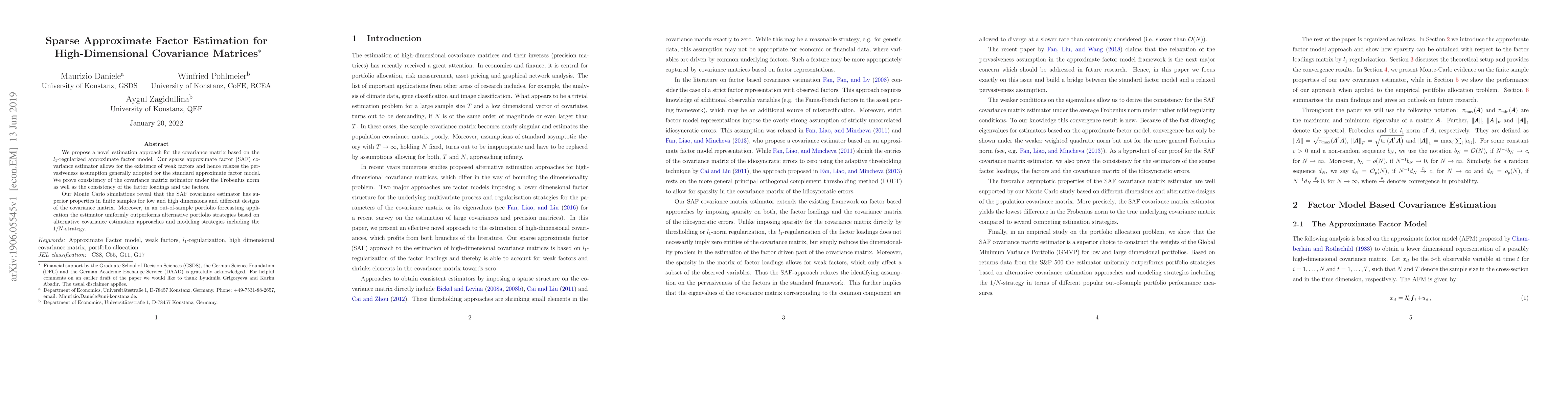 This paper introduces a sparse approximate factor (SAF) covariance estimator for high-dimensional covariance matrices, which relaxes the pervasiveness assumption of the standard model. The proposed method demonstrates superior performance in both Monte Carlo simulations and out-of-sample portfolio forecasting compared to alternative strategies.