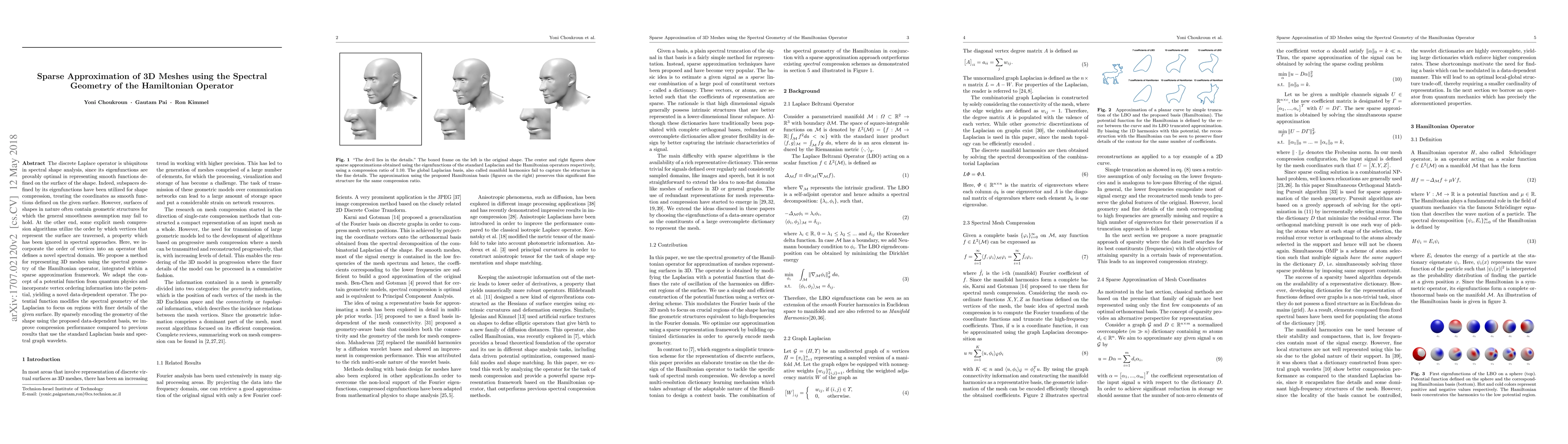 The discrete Laplace operator is ubiquitous in spectral shape analysis, since its eigenfunctions are provably optimal in representing smooth functions defined on the surface of the shape. Indeed, subspaces defined by its eigenfunctions have been utilized for shape compression, treating the coordinates as smooth functions defined on the given surface. However, surfaces of shapes in nature often contain geometric structures for which the general smoothness assumption may fail to hold. At the other end, some explicit mesh compression algorithms utilize the order by which vertices that represent the surface are traversed, a property which has been ignored in spectral approaches. Here, we incorporate the order of vertices into an operator that defines a novel spectral domain. We propose a method for representing 3D meshes using the spectral geometry of the Hamiltonian operator, integrated within a sparse approximation framework. We adapt the concept of a potential function from quantum physics and incorporate vertex ordering information into the potential, yielding a novel data-dependent operator. The potential function modifies the spectral geometry of the Laplacian to focus on regions with finer details of the given surface. By sparsely encoding the geometry of the shape using the proposed data-dependent basis, we improve compression performance compared to previous results that use the standard Laplacian basis and spectral graph wavelets.
