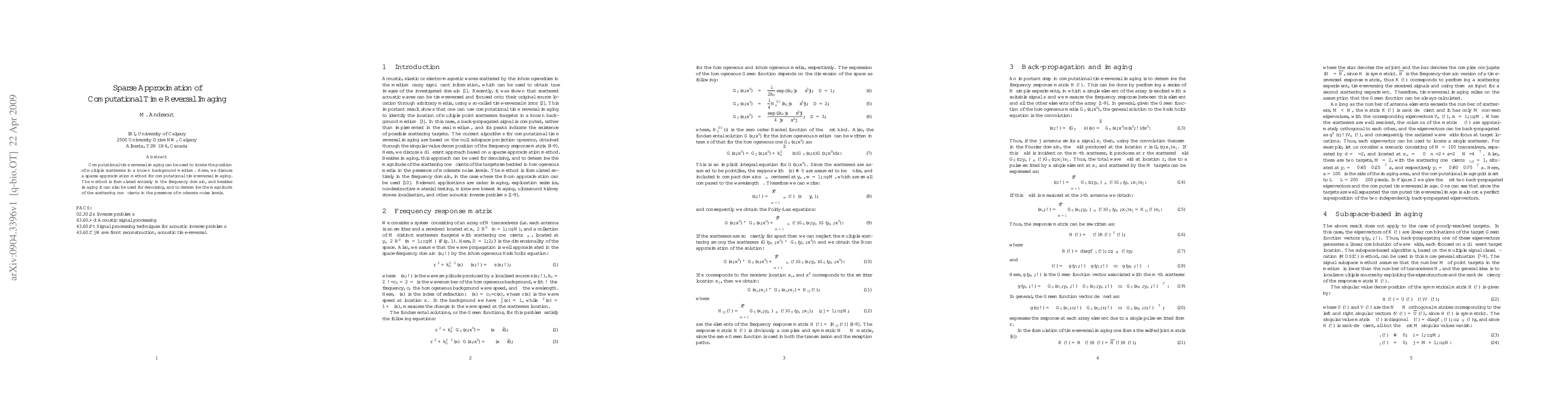 This paper proposes a sparse approximation method for computational time reversal imaging, formulated in the frequency domain, which enhances imaging, denoising, and determination of scattering coefficients in noisy environments.