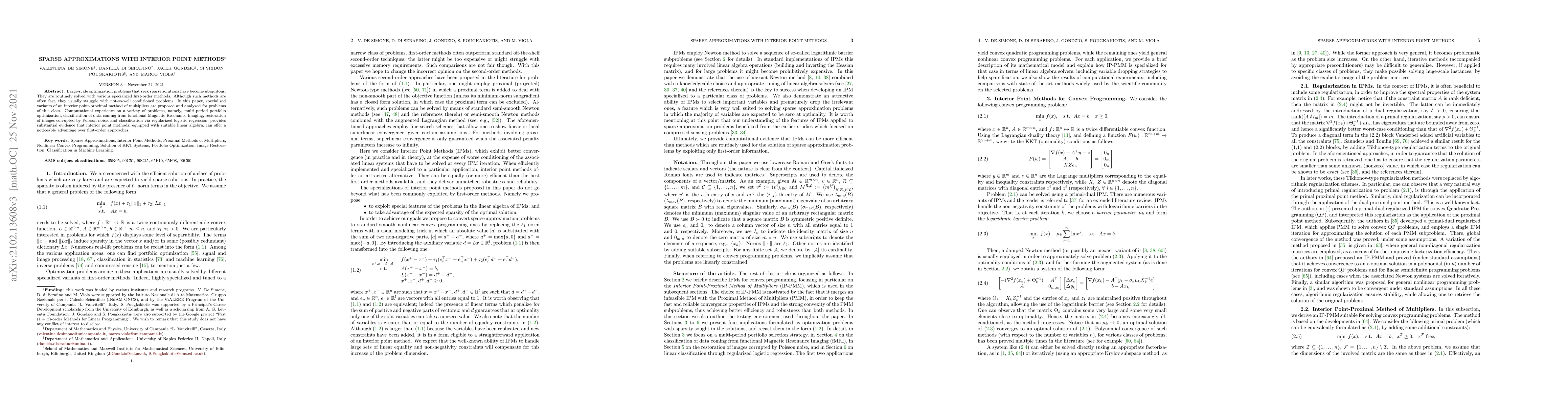 This paper proposes specialized interior point-proximal methods for solving large-scale sparse optimization problems, demonstrating their effectiveness over first-order methods through applications in portfolio optimization, MRI data classification, and image restoration. The results suggest that these interior point methods provide significant advantages in handling not-so-well conditioned problems.