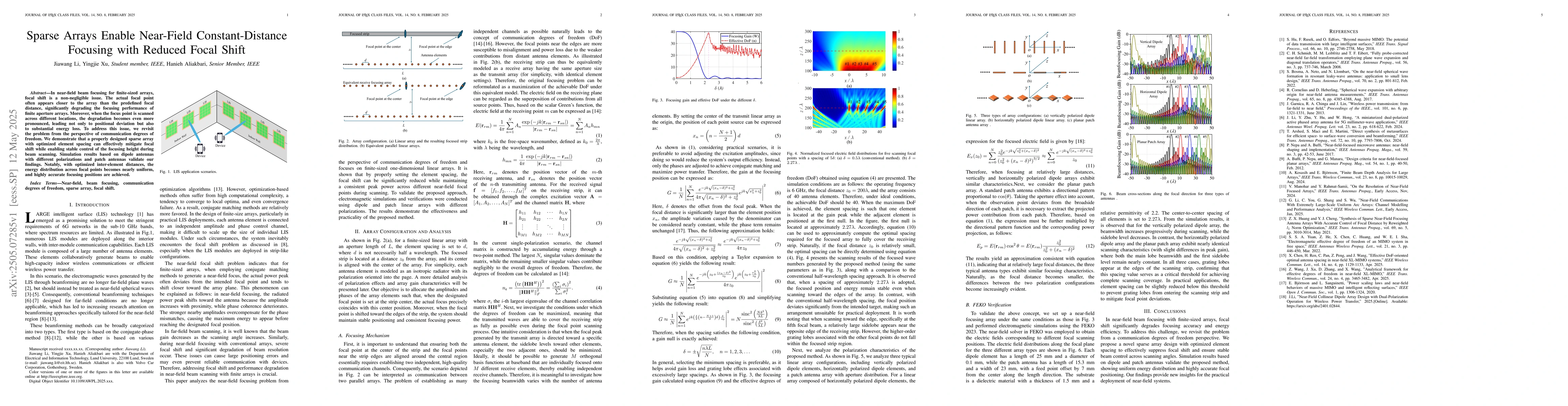 This work is novel in revisiting near-field beam focusing from the perspective of communication degrees of freedom and proposing sparse arrays as a solution to mitigate focal shift issues.