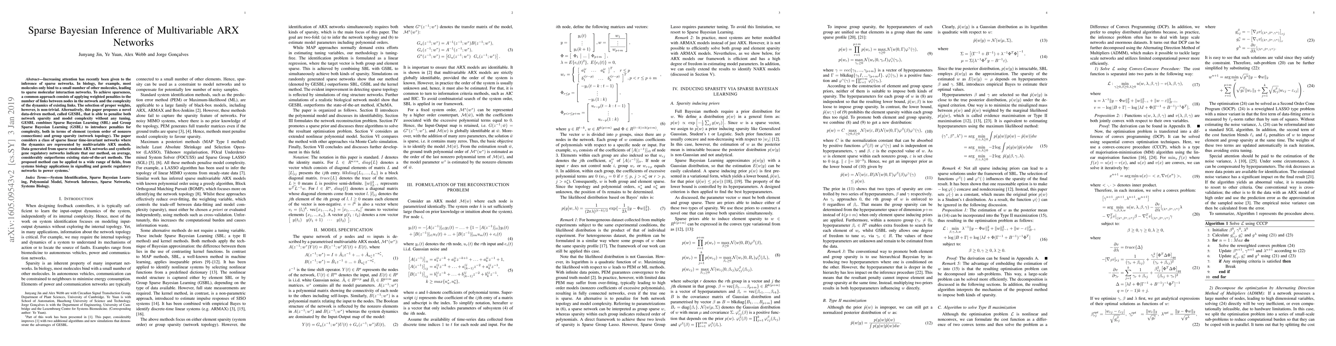 A novel method called GESBL combines Sparse Bayesian Learning and Group Sparse Bayesian Learning to infer sparse multivariable ARX networks with optimal sparsity and model complexity without manual tuning, outperforming existing methods in various applications.