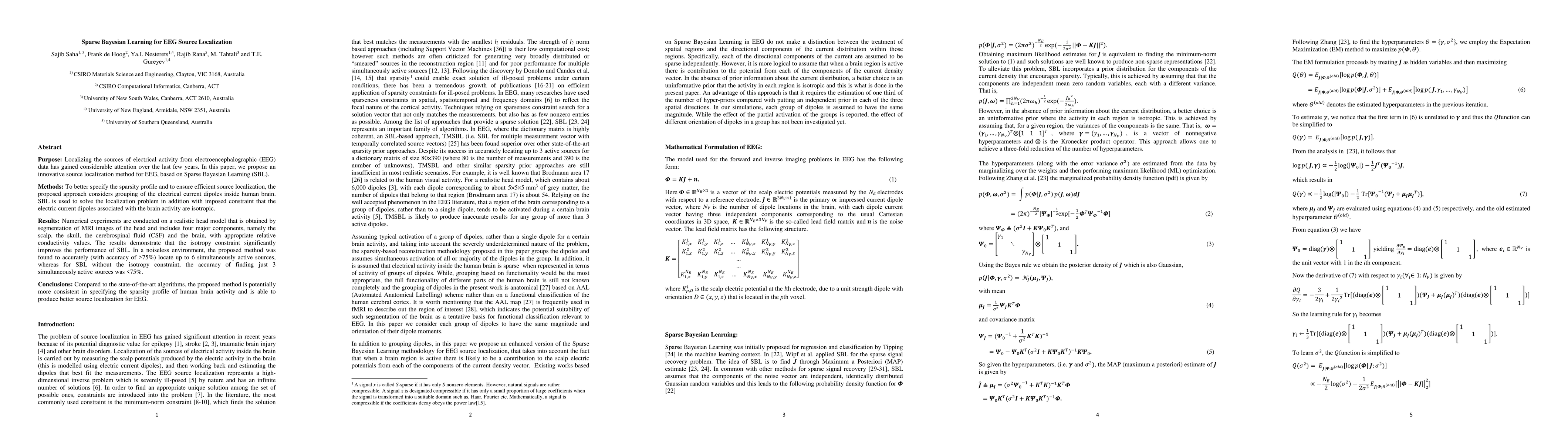 This paper proposes a novel Sparse Bayesian Learning (SBL) method for EEG source localization, incorporating an isotropy constraint to enhance accuracy. Experiments on a realistic head model show that the method can accurately locate up to 6 active sources, outperforming traditional SBL without the constraint.