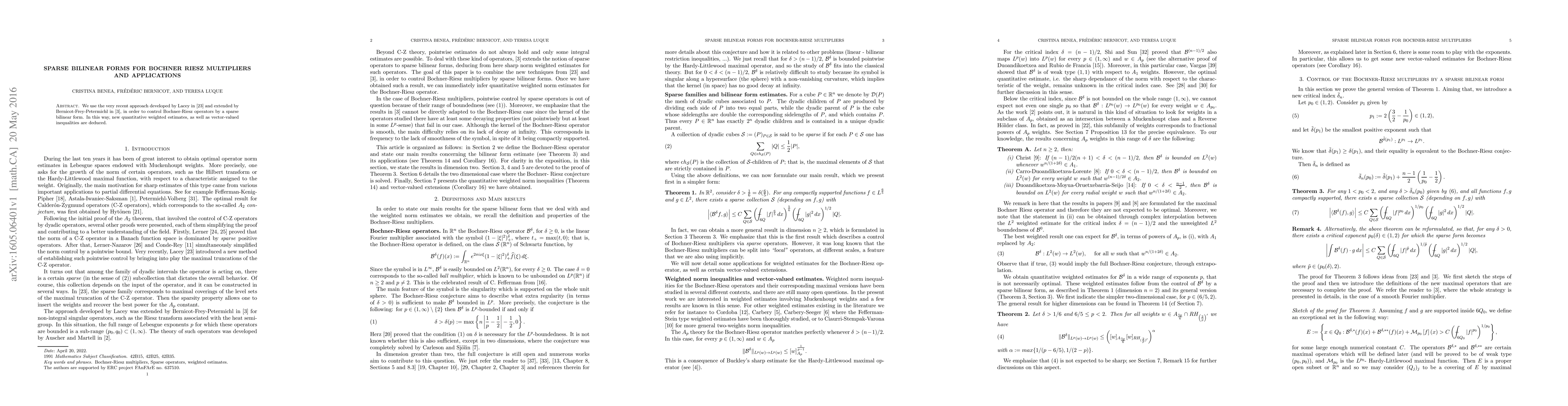 This paper employs Lacey's sparse bilinear form technique to control Bochner-Riesz operators, leading to new quantitative weighted estimates and vector-valued inequalities. The method extends previous work by Bernicot-Frey-Petermichl.