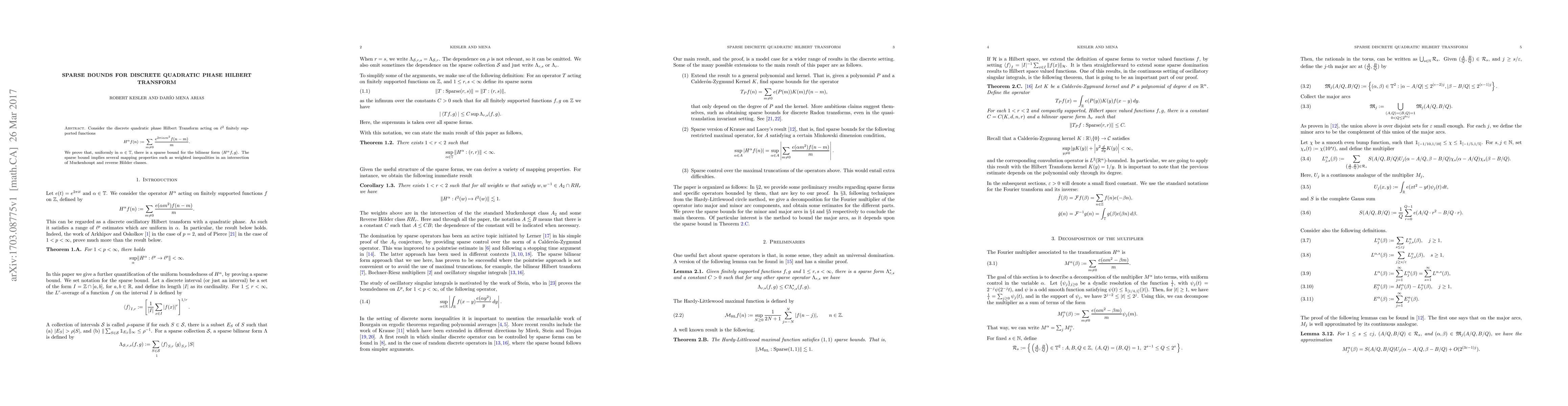 The research paper proves a sparse bound for the discrete quadratic phase Hilbert Transform, providing uniform bounds on a key bilinear form that implies weighted inequalities in certain classes of functions.