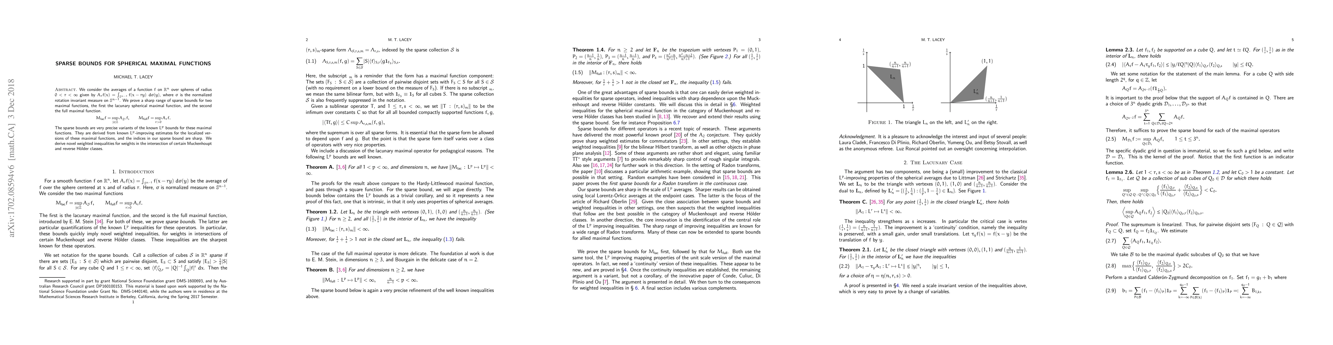 We consider the averages of a function $ f$ on $ \mathbb R ^{n}$ over spheres of radius $ 0< r< \infty $ given by $ A_{r} f (x) = \int_{\mathbb S ^{n-1}} f (x-r y) \; d \sigma (y)$, where $ \sigma $ is the normalized rotation invariant measure on $ \mathbb S ^{n-1}$. We prove a sharp range of sparse bounds for two maximal functions, the first the lacunary spherical maximal function, and the second the full maximal function. $$ M_{{lac}} f = \sup_{j\in \mathbb Z } A_{2^j} f , \qquad M_{{full}} f = \sup_{ r>0 } A_{r} f . $$ The sparse bounds are very precise variants of the known $L^p$ bounds for these maximal functions. They are derived from known $ L ^{p}$-improving estimates for the localized versions of these maximal functions, and the indices in our sparse bound are sharp. We derive novel weighted inequalities for weights in the intersection of certain Muckenhoupt and reverse H\"older classes.