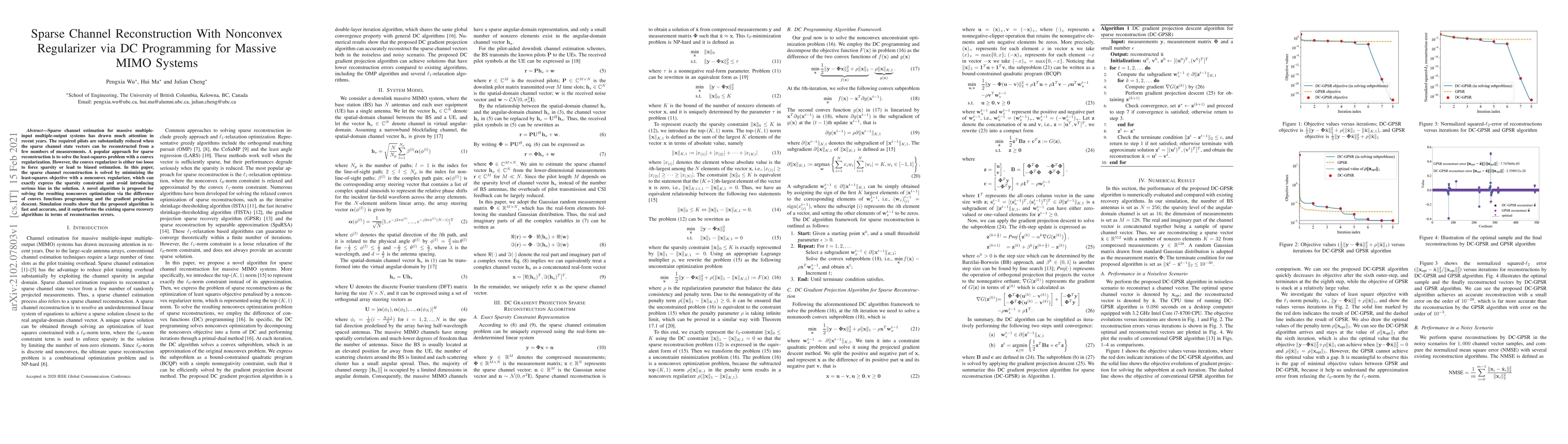 This paper proposes a novel algorithm for sparse channel reconstruction in massive MIMO systems using a nonconvex regularizer to better enforce sparsity and avoid bias. The method employs difference of convex programming and gradient projection descent, demonstrating faster and more accurate reconstruction compared to existing algorithms.