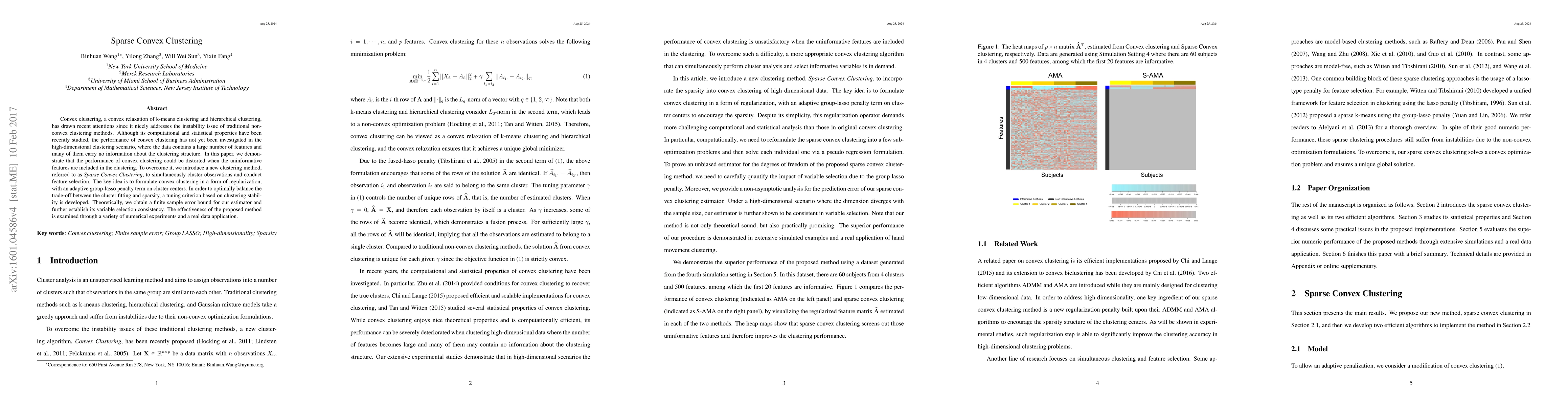 A new method called Sparse Convex Clustering is introduced to balance cluster fitting and feature sparsity in high-dimensional data, outperforming traditional convex clustering methods with uninformative features.