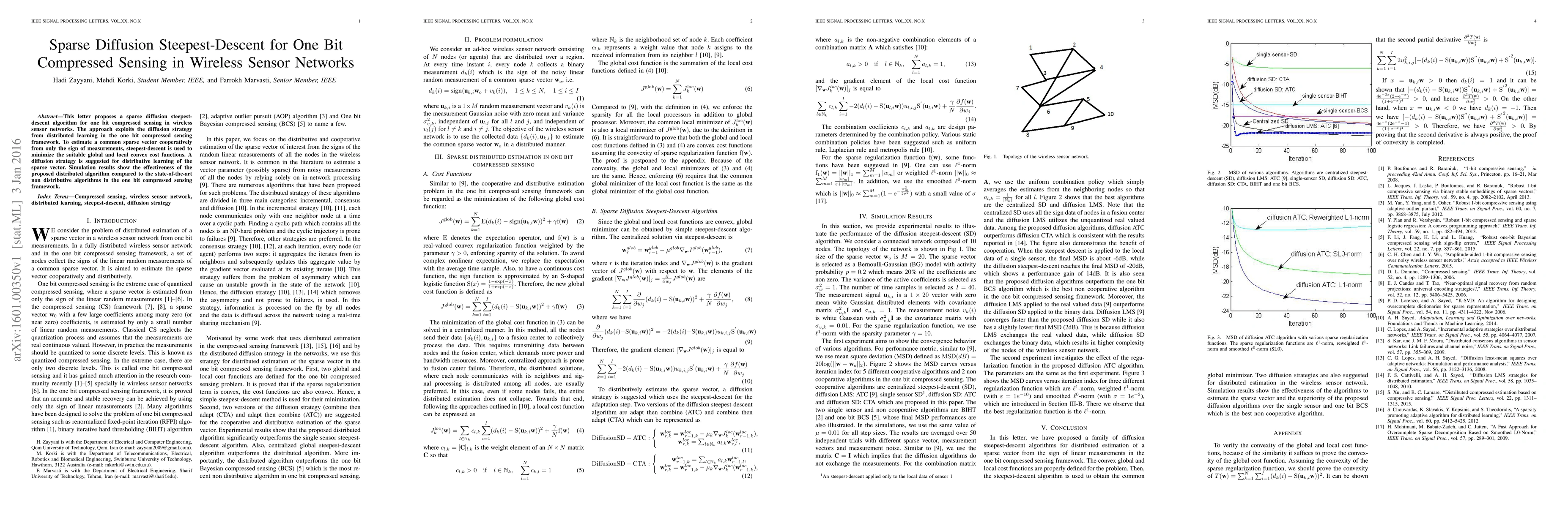 This paper introduces a sparse diffusion steepest-descent algorithm for one bit compressed sensing in wireless sensor networks, leveraging diffusion strategies for distributed learning. Simulation results demonstrate superior performance over non-distributed algorithms in estimating a common sparse vector from sign measurements.