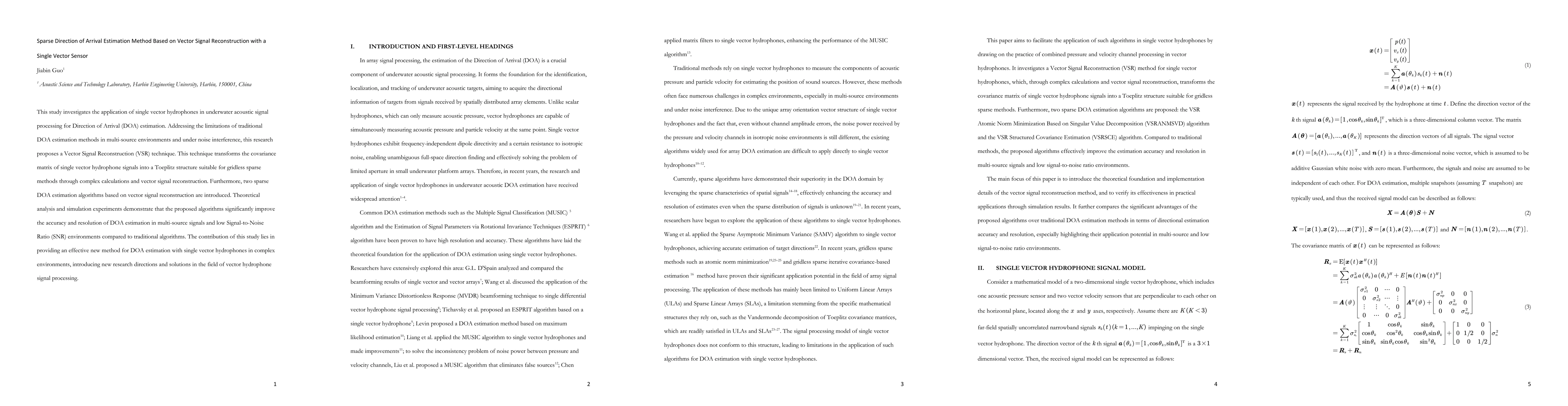 This study investigates the application of single vector hydrophones in underwater acoustic signal processing for Direction of Arrival (DOA) estimation. Addressing the limitations of traditional DOA estimation methods in multi-source environments and under noise interference, this research proposes a Vector Signal Reconstruction (VSR) technique. This technique transforms the covariance matrix of single vector hydrophone signals into a Toeplitz structure suitable for gridless sparse methods through complex calculations and vector signal reconstruction. Furthermore, two sparse DOA estimation algorithms based on vector signal reconstruction are introduced. Theoretical analysis and simulation experiments demonstrate that the proposed algorithms significantly improve the accuracy and resolution of DOA estimation in multi-source signals and low Signal-to-Noise Ratio (SNR) environments compared to traditional algorithms. The contribution of this study lies in providing an effective new method for DOA estimation with single vector hydrophones in complex environments, introducing new research directions and solutions in the field of vector hydrophone signal processing.