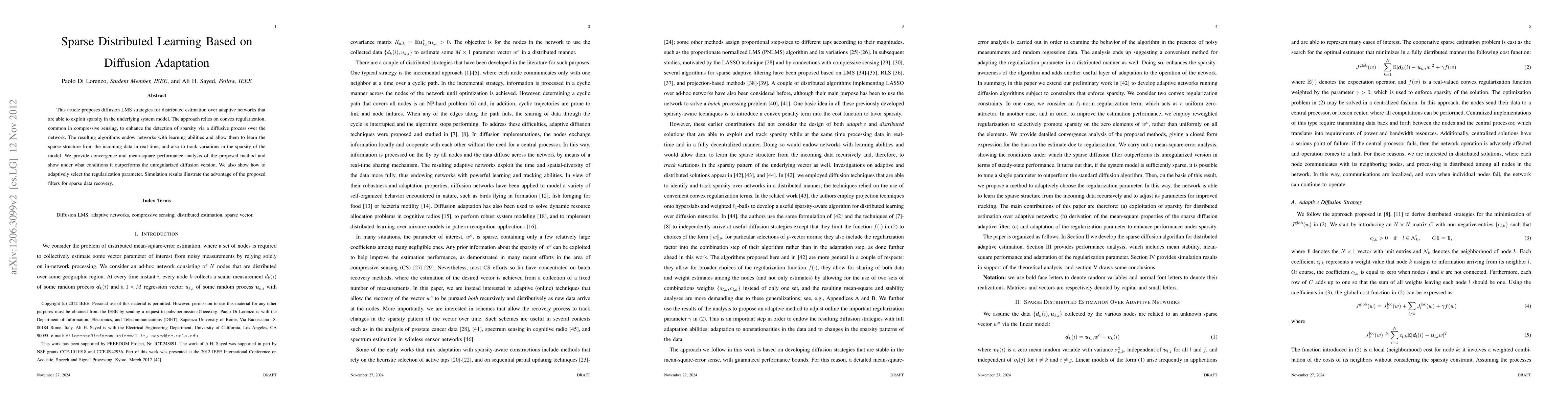 This paper proposes a new method for distributed estimation using diffusion-based learning that can exploit sparsity in system models, allowing networks to learn and adapt to changing data structures.