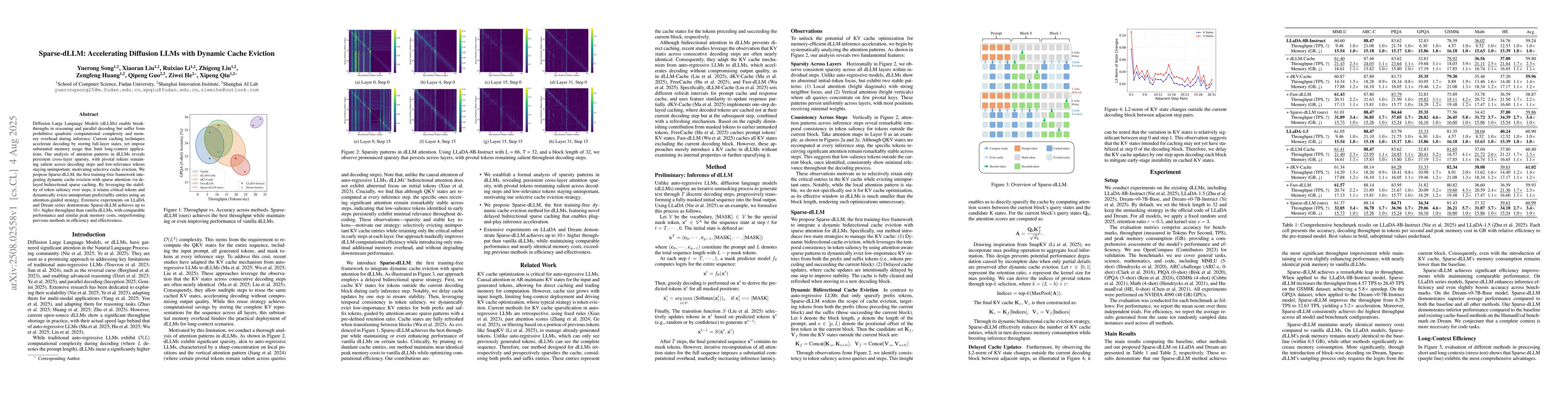 Sparse-dLLM introduces a novel dynamic cache eviction strategy combined with sparse attention, effectively reducing memory usage without compromising performance.