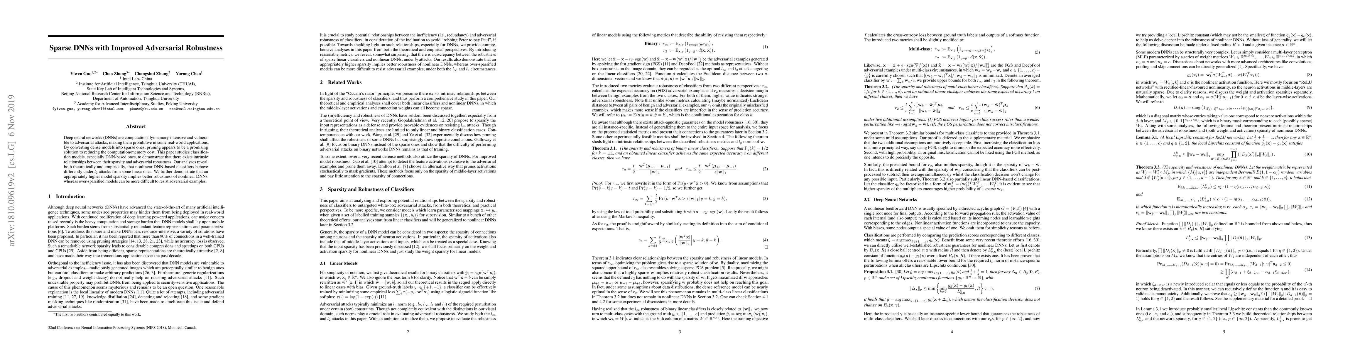 This paper explores the relationship between sparsity in deep neural networks (DNNs) and their robustness against adversarial attacks. It finds that appropriately higher sparsity can enhance the robustness of nonlinear DNNs, while overly sparse models may become more vulnerable to adversarial examples.