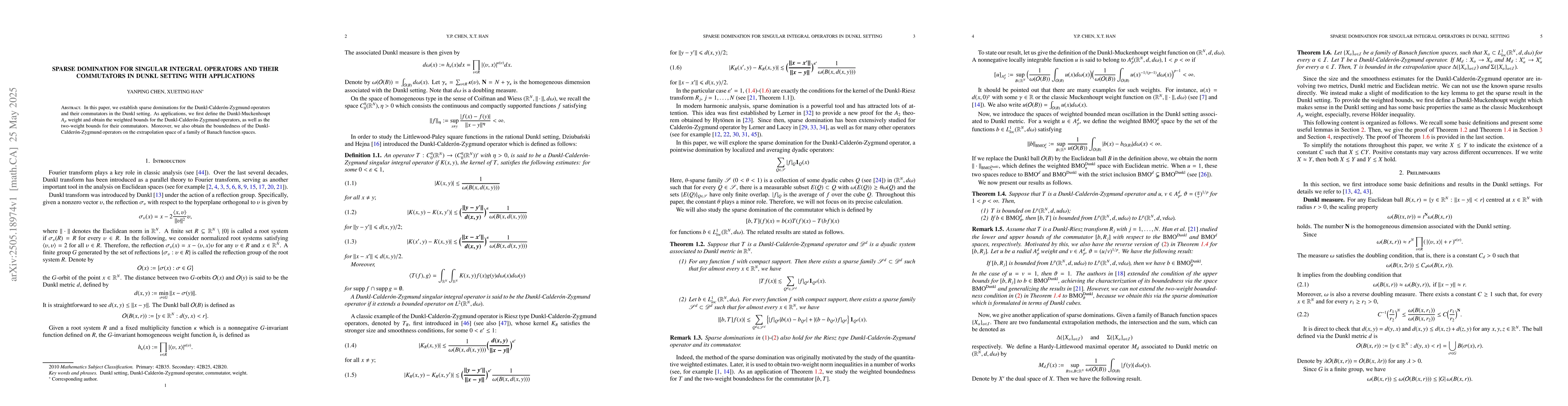 The research methodology involves establishing sparse dominations for Dunkl-Calderón-Zygmund operators and their commutators in the Dunkl setting.