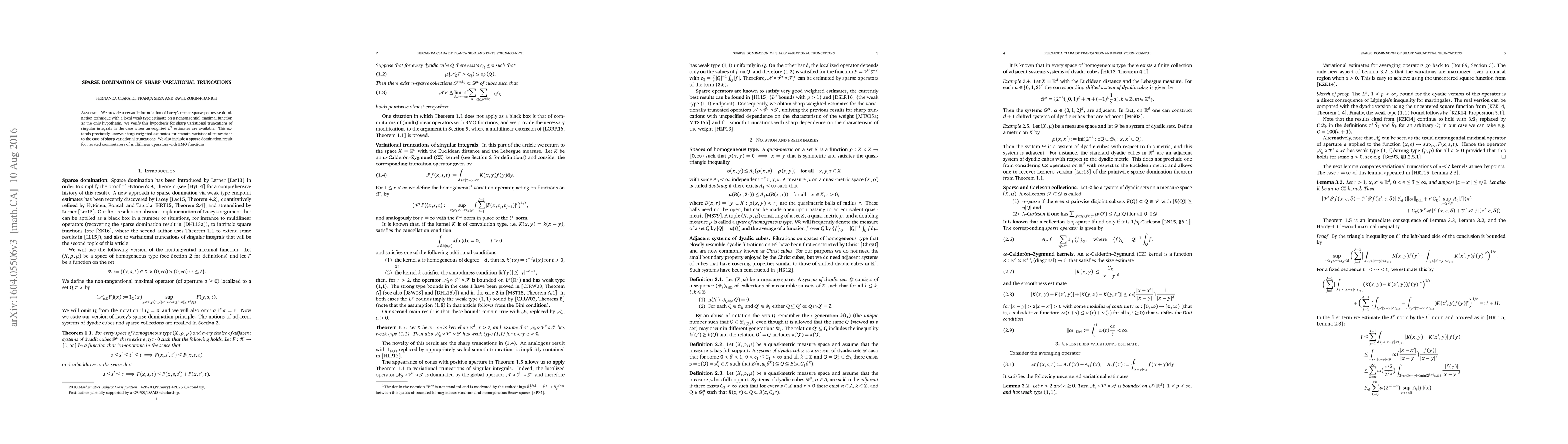 The paper provides a versatile formulation of Lacey's sparse pointwise domination technique, utilizing a local weak type estimate on a nontangential maximal function as the primary hypothesis. This formulation is then applied to sharp variational truncations of singular integrals, extending previously known weighted estimates for smooth variational truncations.