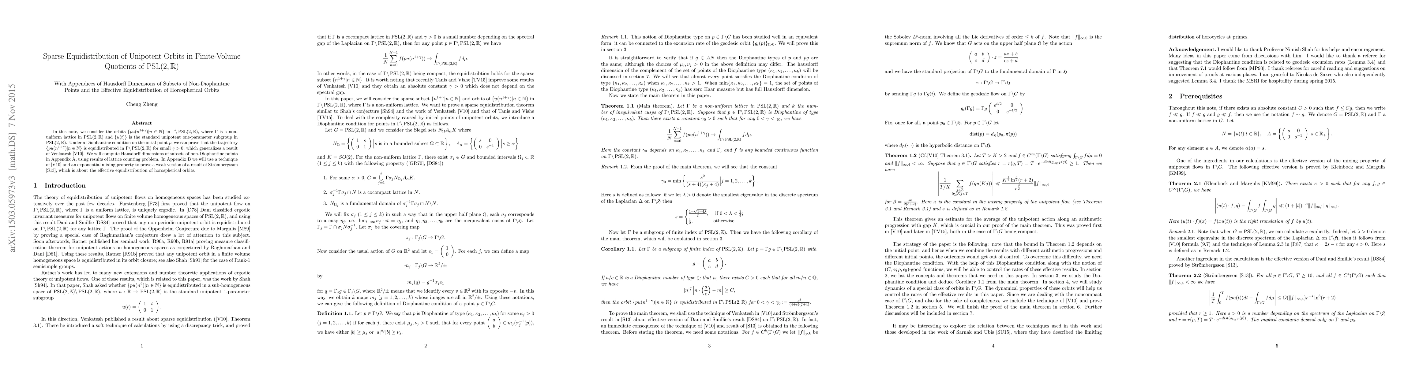 This paper investigates the equidistribution of unipotent orbits in finite-volume quotients of $\text{PSL}(2,\mathbb R)$ under a non-uniform lattice $\Gamma$. It proves equidistribution under a Diophantine condition on the initial point, generalizing a previous result, and includes appendices on Hausdorff dimensions and effective equidistribution of horospherical orbits.