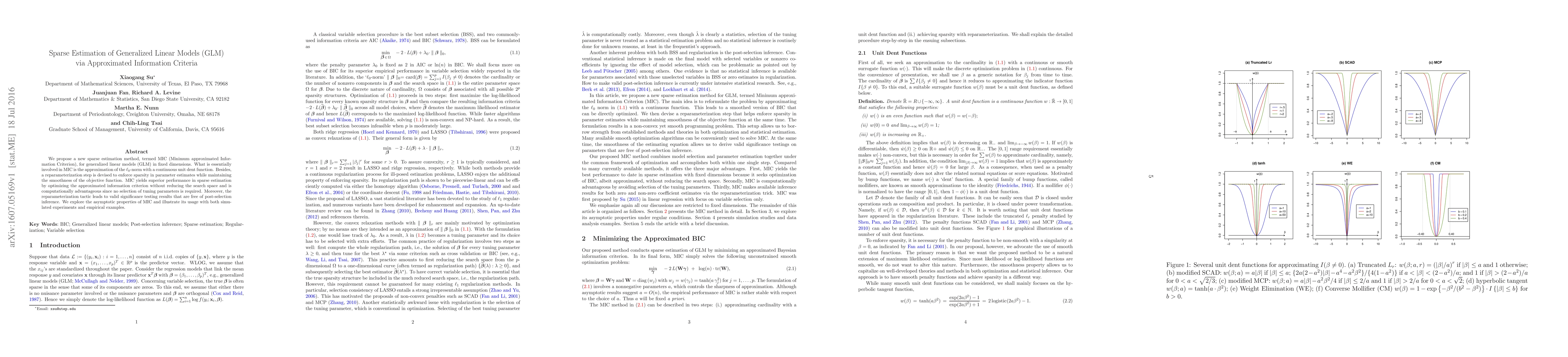 This paper introduces a new sparse estimation method called MIC for generalized linear models, which approximates the $\ell_0$-norm and employs a reparameterization to enforce sparsity. MIC optimizes an approximated information criterion, offering superior performance without tuning parameters and valid significance testing.