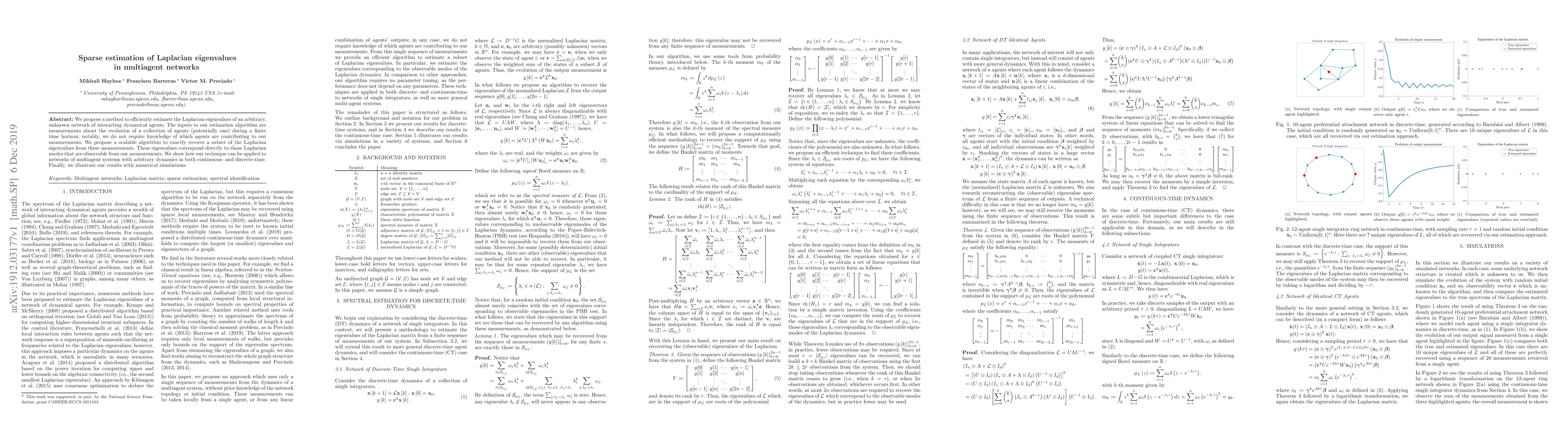 Researchers developed a method to estimate Laplacian eigenvalues in multiagent networks from limited measurements, enabling the recovery of observable modes without prior knowledge of contributing agents.