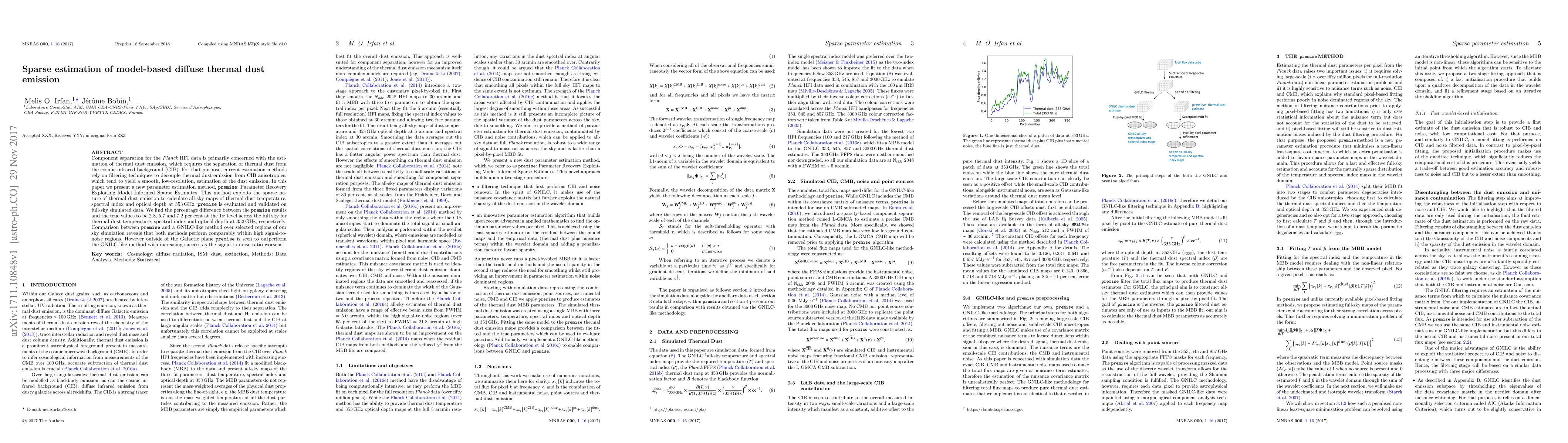Component separation for the Planck HFI data is primarily concerned with the estimation of thermal dust emission, which requires the separation of thermal dust from the cosmic infrared background (CIB). For that purpose, current estimation methods rely on filtering techniques to decouple thermal dust emission from CIB anisotropies, which tend to yield a smooth, low- resolution, estimation of the dust emission. In this paper we present a new parameter estimation method, premise: Parameter Recovery Exploiting Model Informed Sparse Estimates. This method exploits the sparse nature of thermal dust emission to calculate all-sky maps of thermal dust temperature, spectral index and optical depth at 353 GHz. premise is evaluated and validated on full-sky simulated data. We find the percentage difference between the premise results and the true values to be 2.8, 5.7 and 7.2 per cent at the 1{\sigma} level across the full sky for thermal dust temperature, spectral index and optical depth at 353 GHz, respectively. Comparison between premise and a GNILC-like method over selected regions of our sky simulation reveals that both methods perform comparably within high signal-to-noise regions. However outside of the Galactic plane premise is seen to outperform the GNILC-like method with increasing success as the signal-to-noise ratio worsens.