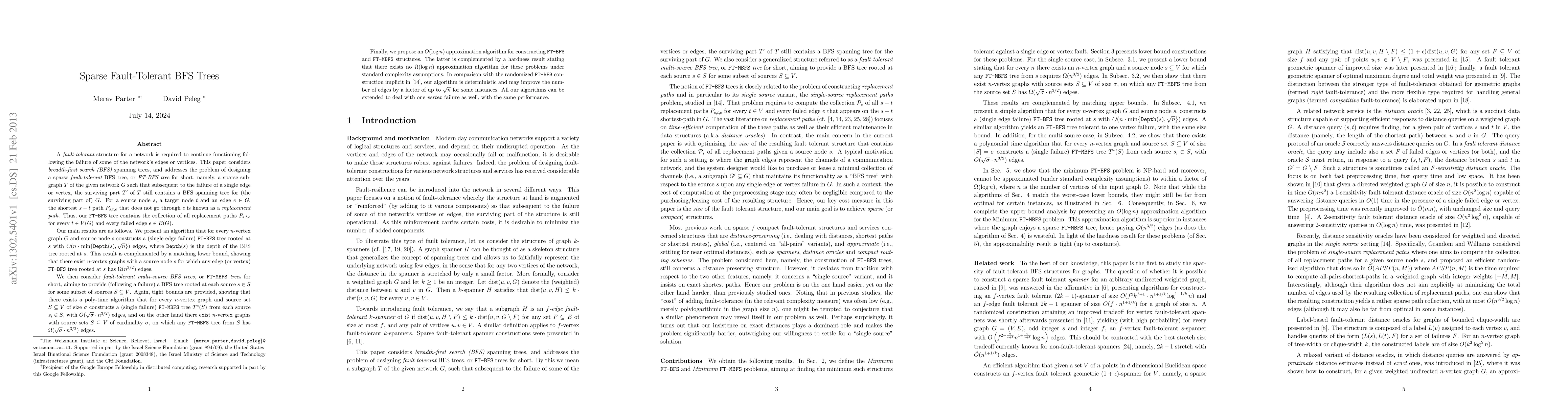 This paper presents algorithms for constructing sparse fault-tolerant BFS trees (FT-BFS trees) and multi-source BFS trees (FT-MBFS trees) that maintain BFS spanning trees after single edge or vertex failures. The study provides tight bounds and an efficient approximation algorithm, along with a matching hardness result for achieving better approximations.