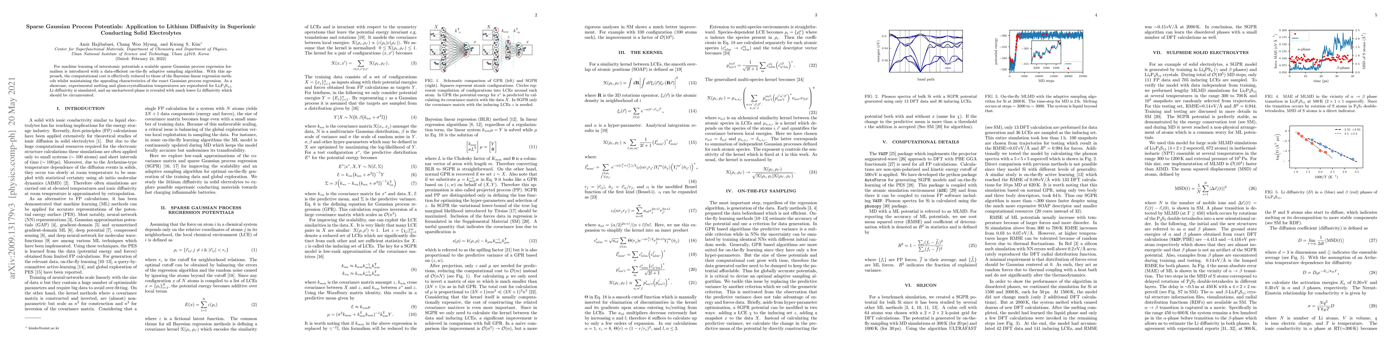 This paper introduces a scalable sparse Gaussian process regression method for machine learning of interatomic potentials, demonstrating its application in predicting lithium diffusivity in superionic conducting solid electrolytes. The approach reduces computational costs while maintaining accuracy, revealing a new phase with significantly lower lithium diffusivity.