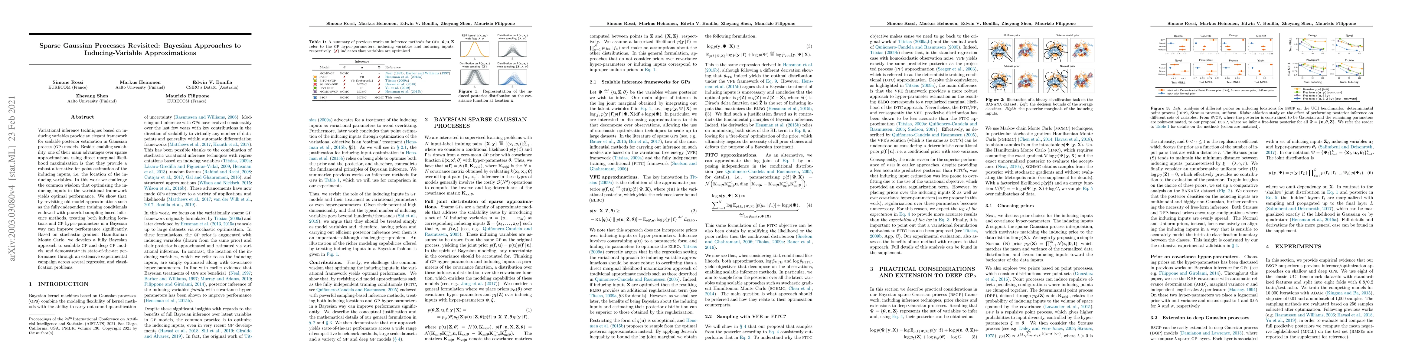 This paper revisits sparse Gaussian processes using Bayesian approaches to inducing-variable approximations, demonstrating that fully Bayesian methods can outperform variational inference techniques by optimizing both inducing locations and GP hyperparameters, achieving state-of-the-art performance across various regression and classification tasks.