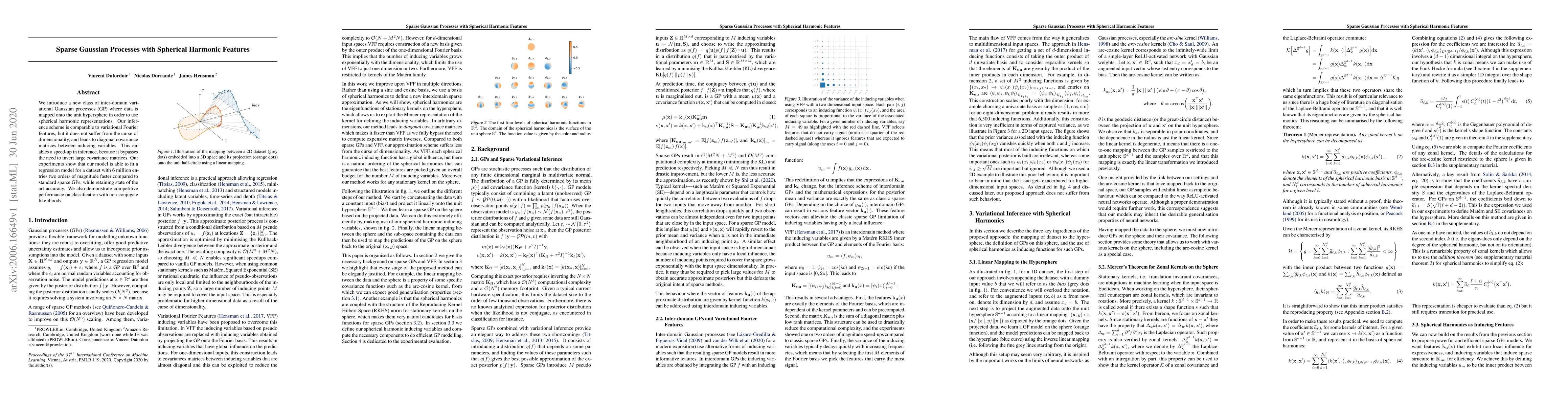 This paper proposes a novel sparse Gaussian process method using spherical harmonic features, which maps data onto the unit hypersphere. It achieves faster inference compared to standard sparse GPs by avoiding the inversion of large covariance matrices, demonstrating significant speed-ups and competitive accuracy on large datasets.