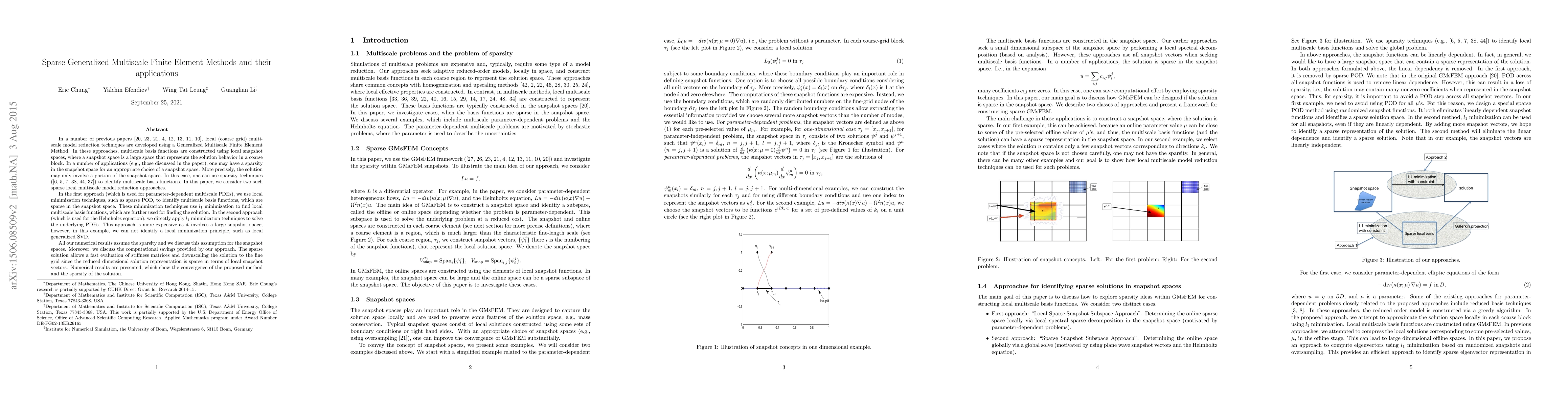 This paper explores sparse local multiscale model reduction techniques using Generalized Multiscale Finite Element Methods. It introduces two approaches: one employing sparse POD and $l_1$ minimization for parameter-dependent multiscale PDEs, and another using $l_1$ minimization directly for solving the Helmholtz equation, despite its higher computational cost.