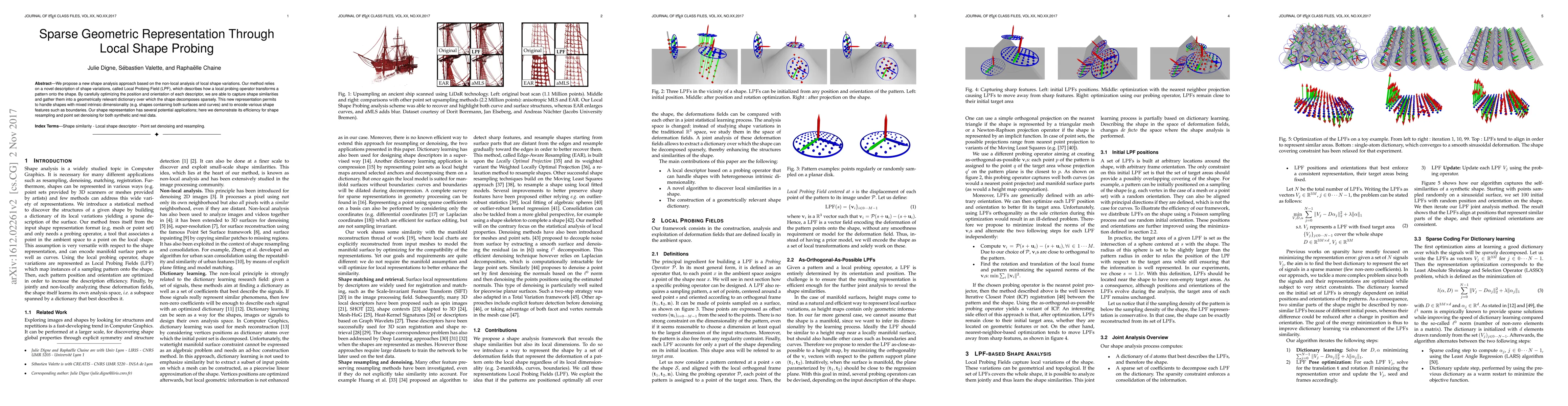 We propose a new shape analysis approach based on the non-local analysis of local shape variations. Our method relies on a novel description of shape variations, called Local Probing Field (LPF), which describes how a local probing operator transforms a pattern onto the shape. By carefully optimizing the position and orientation of each descriptor, we are able to capture shape similarities and gather them into a geometrically relevant dictionary over which the shape decomposes sparsely. This new representation permits to handle shapes with mixed intrinsic dimensionality (e.g. shapes containing both surfaces and curves) and to encode various shape features such as boundaries. Our shape representation has several potential applications; here we demonstrate its efficiency for shape resampling and point set denoising for both synthetic and real data.