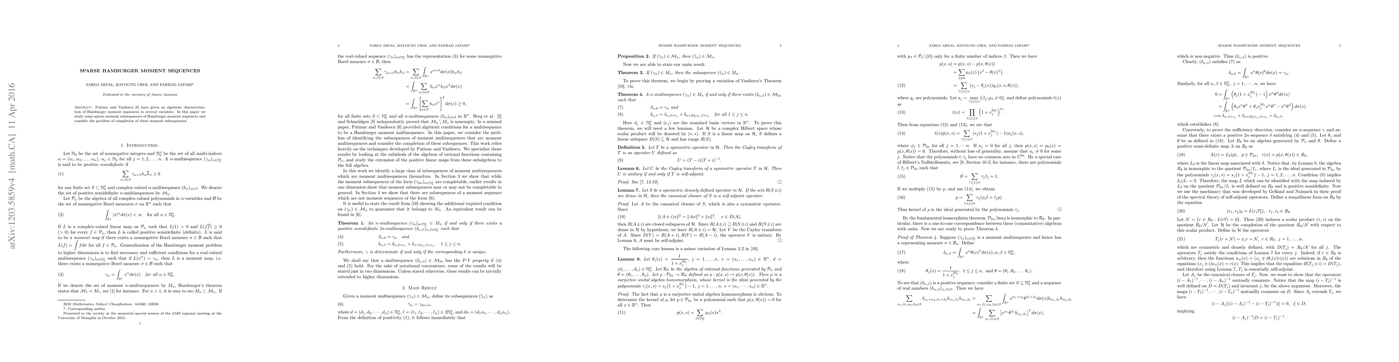 This paper investigates sparse subsequences of Hamburger moment sequences, providing an algebraic characterization and exploring the problem of completing these sparse subsequences. The work builds on the foundational algebraic framework established by Putinar and Vasilescu.