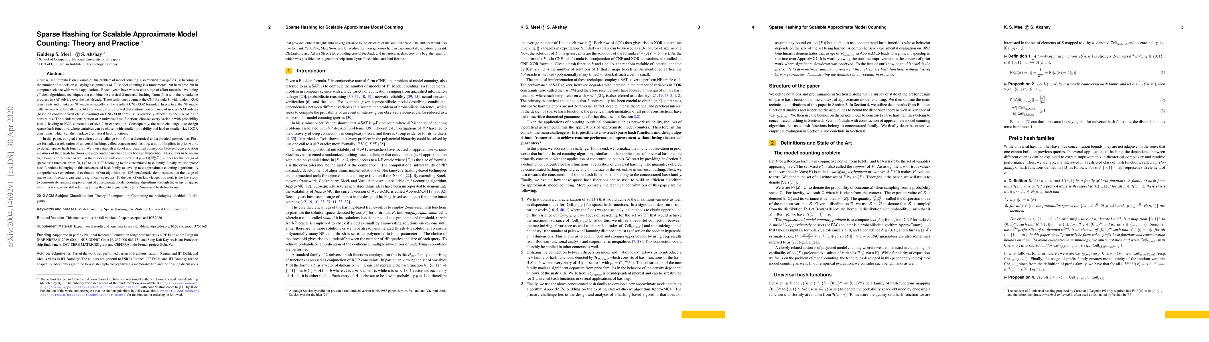 Researchers developed a new method for model counting called sparse hashing, which uses concentrated hashing to reduce the size of constraints in CNF formulas, leading to significant speedups in solving #SAT problems on 1893 benchmarks.