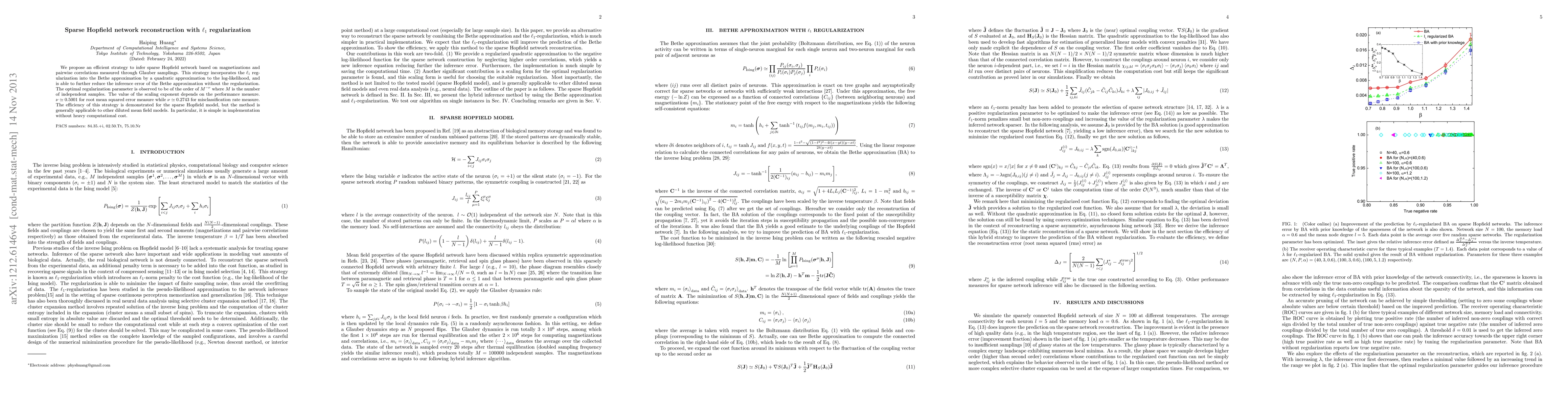 Researchers developed an efficient method to infer sparse Hopfield networks using Glauber samplings and $ell_{1}$ regularization, achieving reduced inference error without increasing computational cost.