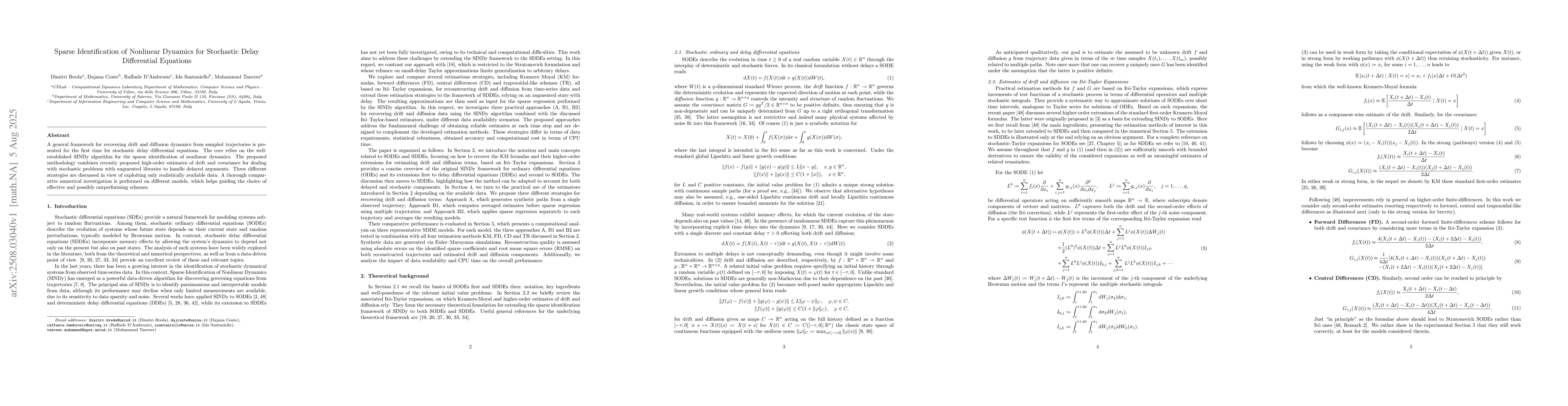 A general framework for recovering drift and diffusion dynamics from sampled trajectories is presented for the first time for stochastic delay differential equations. The core relies on the well-established SINDy algorithm for the sparse identification of nonlinear dynamics. The proposed methodology combines recently proposed high-order estimates of drift and covariance for dealing with stochastic problems with augmented libraries to handle delayed arguments. Three different strategies are discussed in view of exploiting only realistically available data. A thorough comparative numerical investigation is performed on different models, which helps guiding the choice of effective and possibly outperforming schemes.