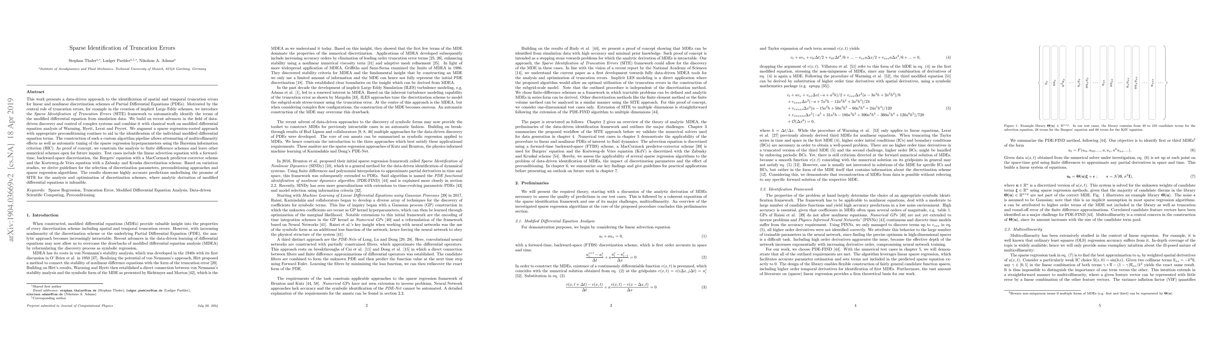 This work presents a data-driven approach to the identification of spatial and temporal truncation errors for linear and nonlinear discretization schemes of Partial Differential Equations (PDEs). Motivated by the central role of truncation errors, for example in the creation of implicit Large Eddy schemes, we introduce the Sparse Identification of Truncation Errors (SITE) framework to automatically identify the terms of the modified differential equation from simulation data. We build on recent advances in the field of data-driven discovery and control of complex systems and combine it with classical work on modified differential equation analysis of Warming, Hyett, Lerat and Peyret. We augment a sparse regression-rooted approach with appropriate preconditioning routines to aid in the identification of the individual modified differential equation terms. The construction of such a custom algorithm pipeline allows attenuating of multicollinearity effects as well as automatic tuning of the sparse regression hyperparameters using the Bayesian information criterion (BIC). As proof of concept, we constrain the analysis to finite difference schemes and leave other numerical schemes open for future inquiry. Test cases include the linear advection equation with a forward-time, backward-space discretization, the Burgers' equation with a MacCormack predictor-corrector scheme and the Korteweg-de Vries equation with a Zabusky and Kruska discretization scheme. Based on variation studies, we derive guidelines for the selection of discretization parameters, preconditioning approaches and sparse regression algorithms. The results showcase highly accurate predictions underlining the promise of SITE for the analysis and optimization of discretization schemes, where analytic derivation of modified differential equations is infeasible.