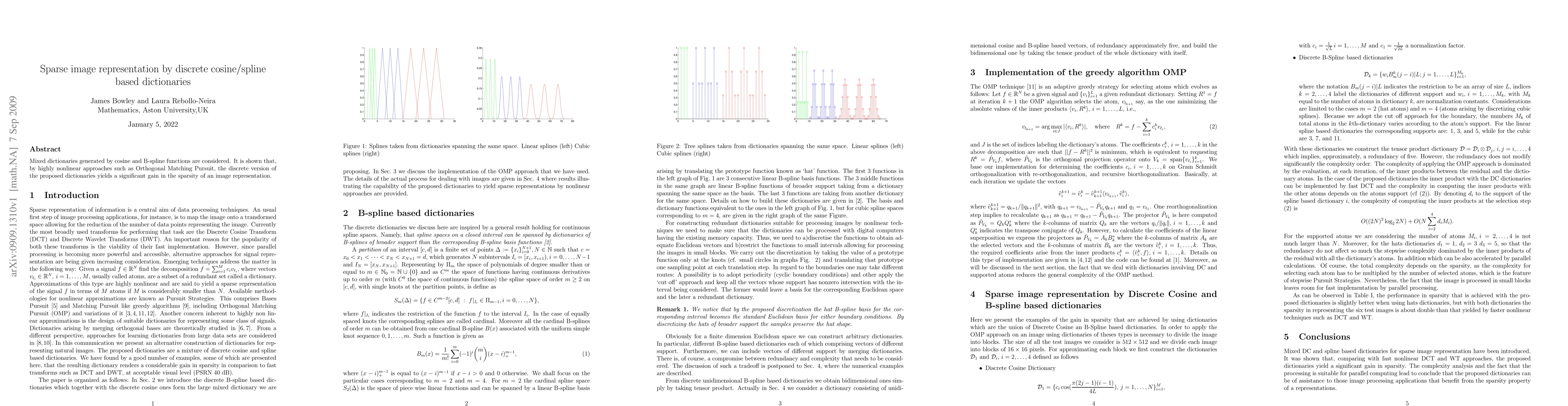 This paper explores mixed dictionaries composed of cosine and B-spline functions for sparse image representation. It demonstrates that using nonlinear methods like Orthogonal Matching Pursuit, the proposed discrete dictionaries achieve a notable improvement in image sparsity.