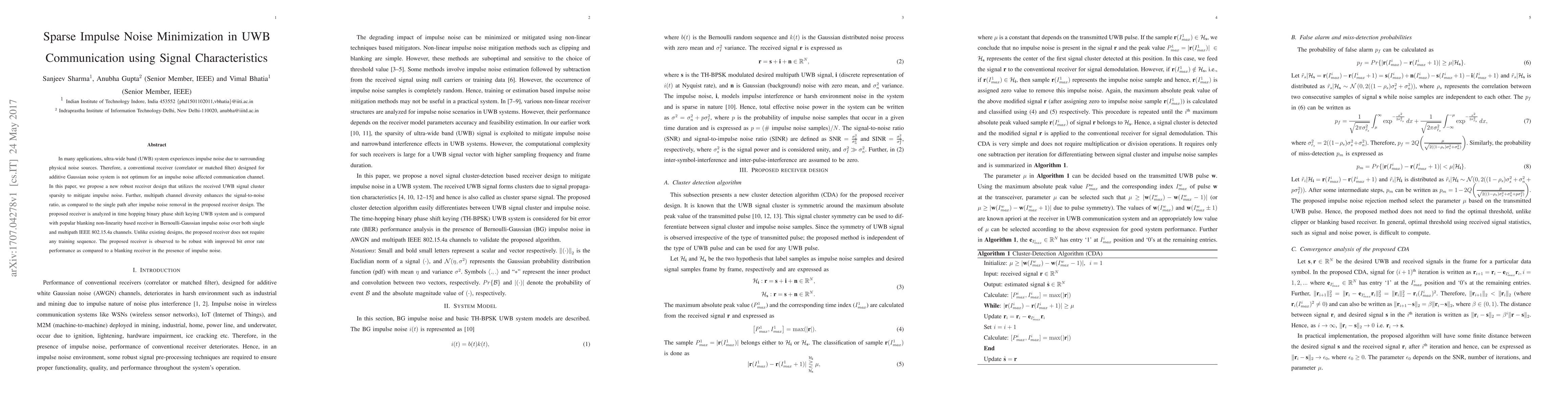 The research proposes a new robust UWB receiver design that exploits signal cluster sparsity to mitigate impulse noise, enhancing SNR via multipath channel diversity. It compares the proposed design with a popular blanking non-linearity-based receiver over both single and multipath IEEE 802.15.4a channels in a time-hopping binary phase shift keying UWB system.