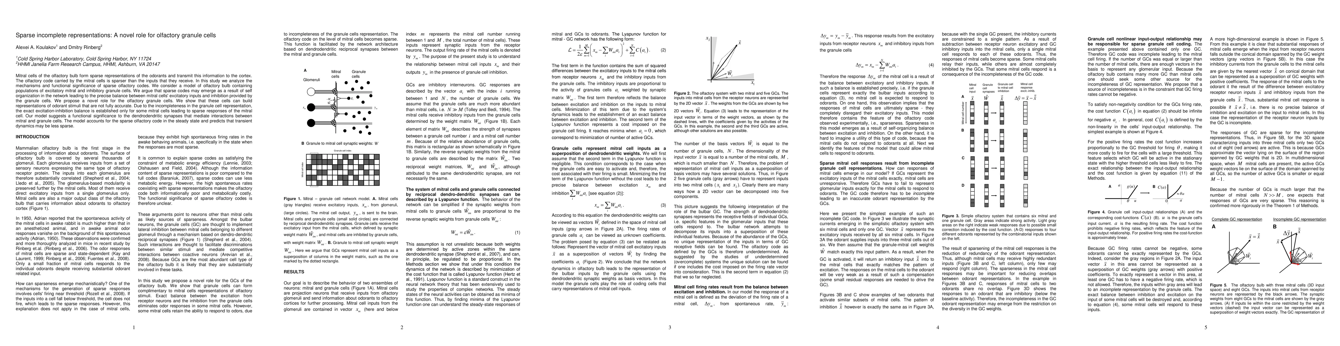 This paper investigates the mechanisms behind sparse olfactory coding in the olfactory bulb, proposing that granule cells play a novel role in creating incomplete representations that lead to sparse responses in mitral cells through a precise balance of excitation and inhibition. The study suggests that dendrodendritic synapses between mitral and granule cells are functionally significant in this process.