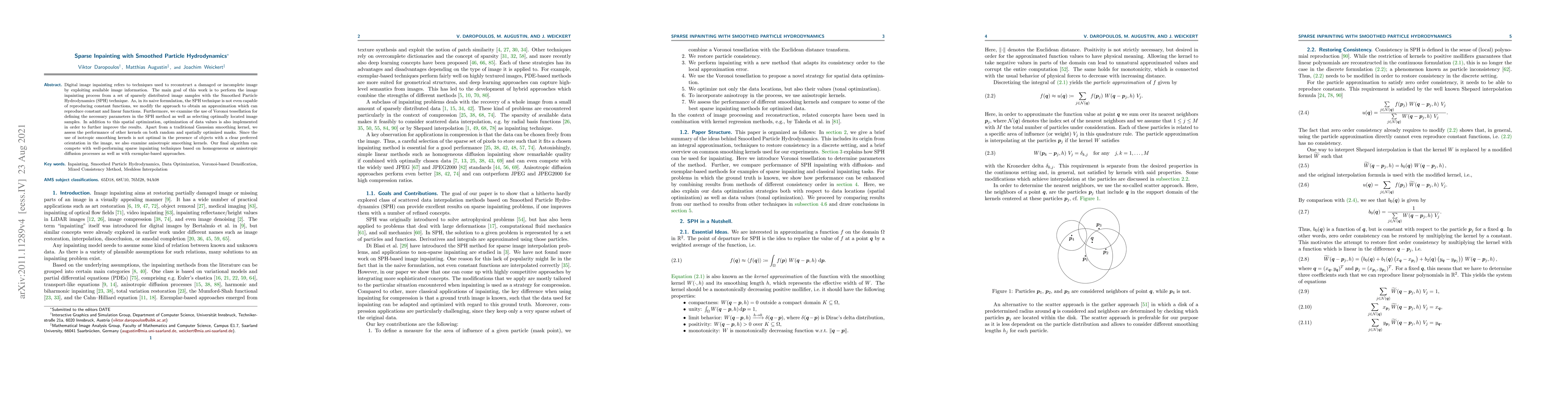 This paper proposes a modified Smoothed Particle Hydrodynamics (SPH) technique for sparse image inpainting, optimizing both spatial and data value parameters. The authors explore anisotropic kernels for better performance on images with preferred orientations, achieving competitive results against other sparse inpainting methods.