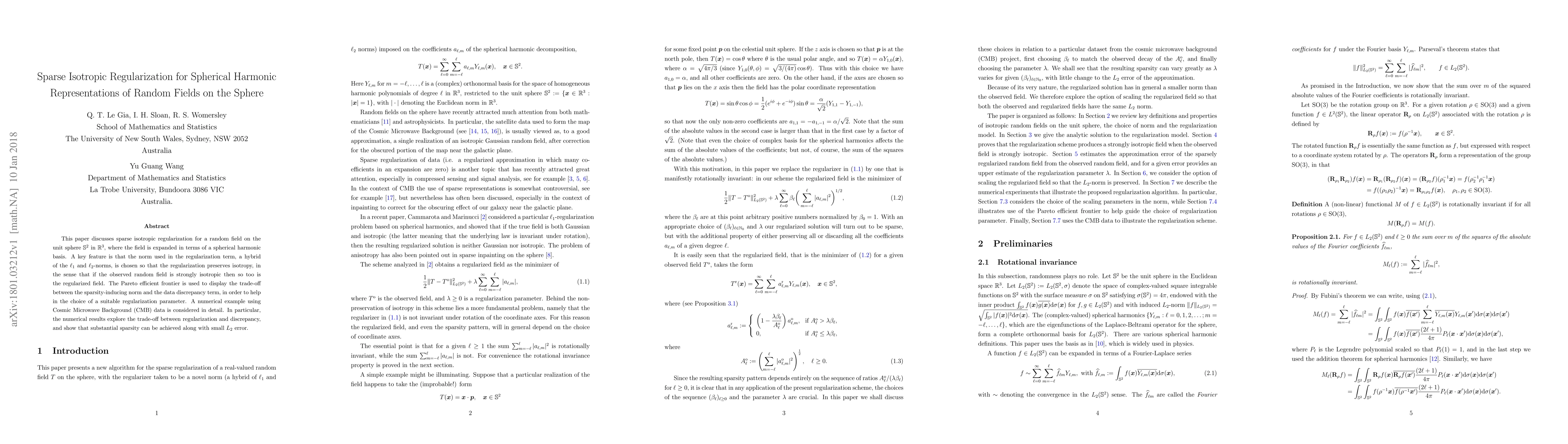 This paper introduces a new regularization method for spherical harmonic representations of random fields on the sphere, which preserves isotropy and achieves substantial sparsity with small L2 error.