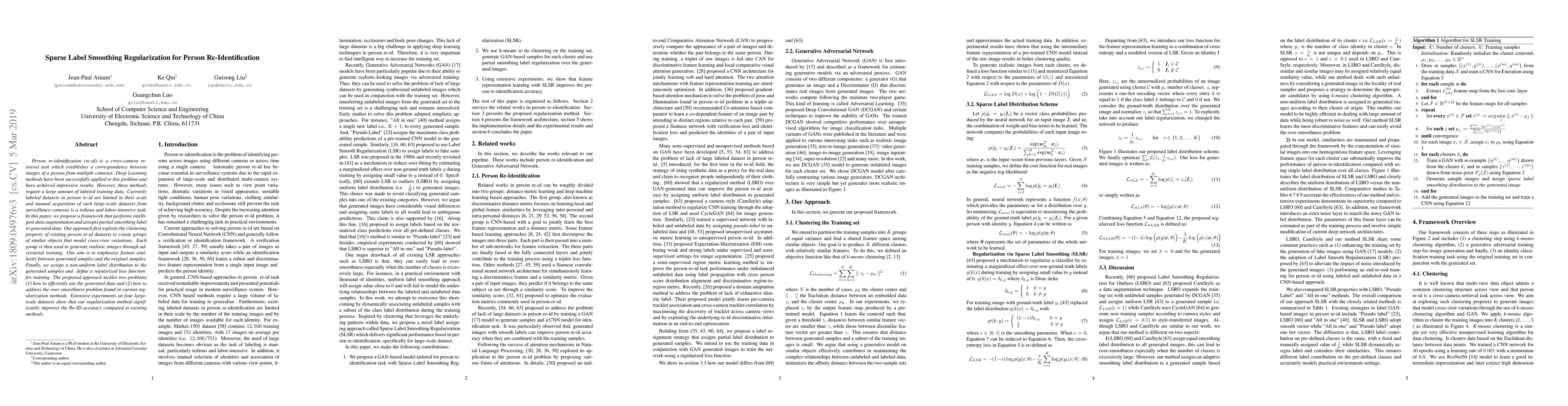 Person re-identification (re-id) is a cross-camera retrieval task which establishes a correspondence between images of a person from multiple cameras. Deep Learning methods have been successfully applied to this problem and have achieved impressive results. However, these methods require a large amount of labeled training data. Currently labeled datasets in person re-id are limited in their scale and manual acquisition of such large-scale datasets from surveillance cameras is a tedious and labor-intensive task. In this paper, we propose a framework that performs intelligent data augmentation and assigns partial smoothing label to generated data. Our approach first exploits the clustering property of existing person re-id datasets to create groups of similar objects that model cross-view variations. Each group is then used to generate realistic images through adversarial training. Our aim is to emphasize feature similarity between generated samples and the original samples. Finally, we assign a non-uniform label distribution to the generated samples and define a regularized loss function for training. The proposed approach tackles two problems (1) how to efficiently use the generated data and (2) how to address the over-smoothness problem found in current regularization methods. Extensive experiments on four larges cale datasets show that our regularization method significantly improves the Re-ID accuracy compared to existing methods.