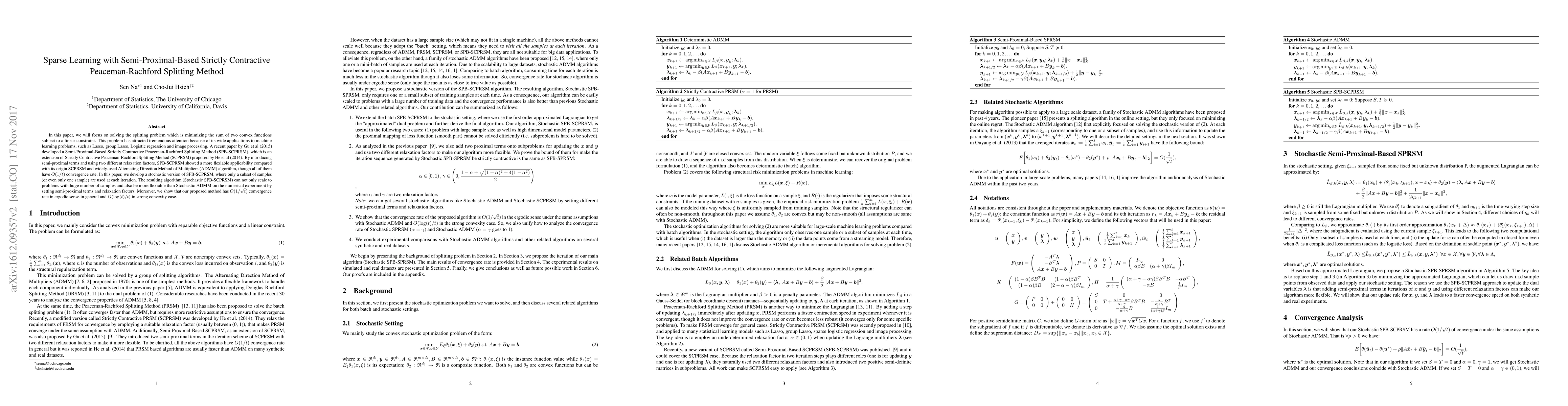 This paper introduces a stochastic version of the Semi-Proximal-Based Strictly Contractive Peaceman-Rachford Splitting Method (SPB-SPRSM), demonstrating improved flexibility over Stochastic ADMM and achieving an $O(1/\sqrt{t})$ convergence rate. The proposed algorithm maintains faster convergence compared to ADMM in practical applications.
