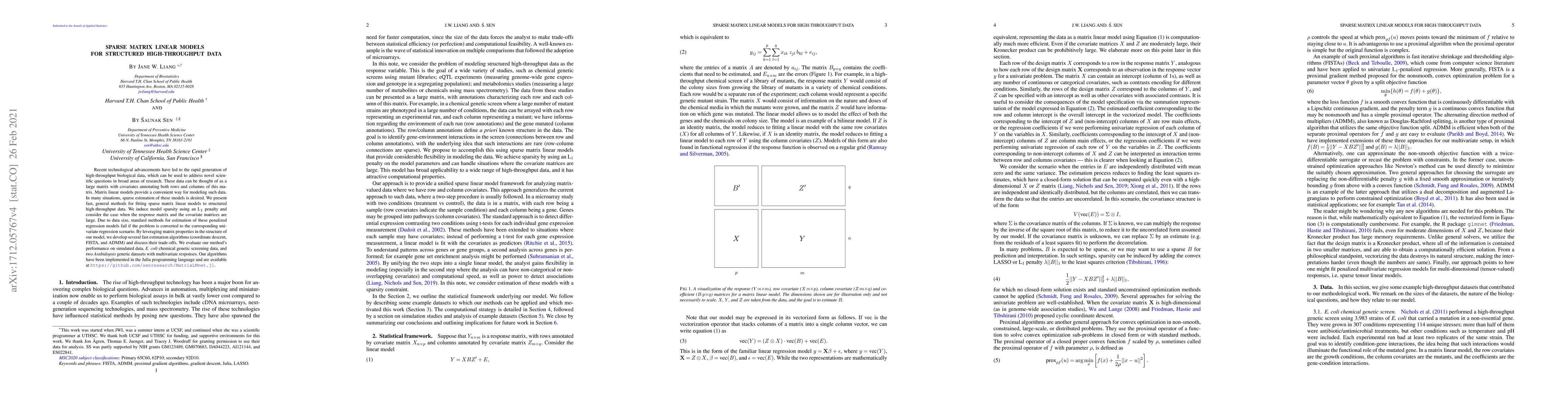 Researchers developed fast methods for fitting sparse matrix linear models to high-throughput biological data, leveraging matrix properties to improve performance on simulated and real-world datasets.