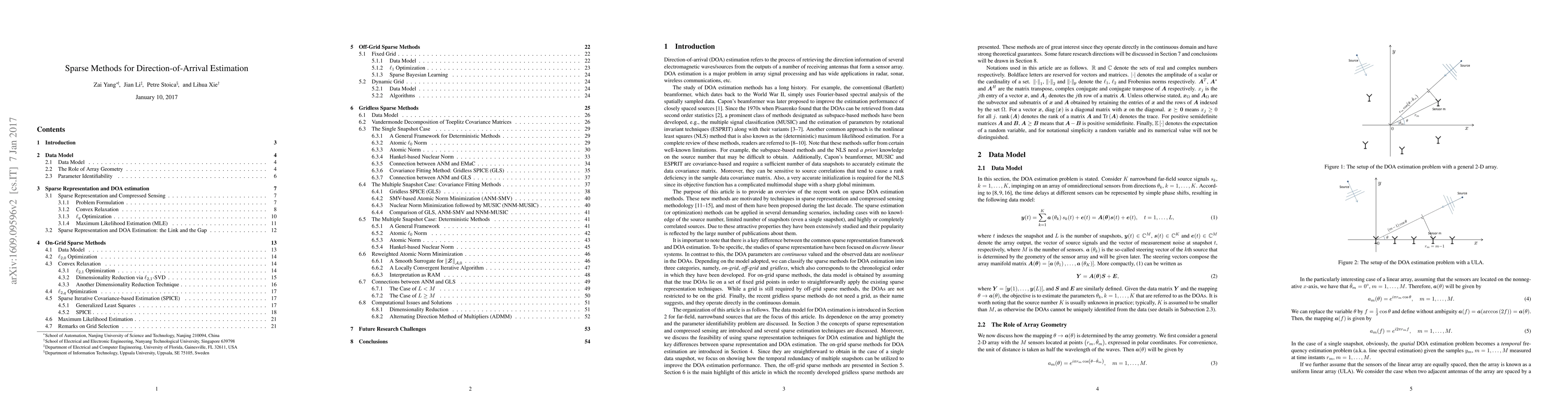 This paper reviews sparse methods for direction-of-arrival (DOA) estimation, focusing on recent advancements in gridless techniques like covariance fitting and atomic norm approaches. It also outlines future research directions in the field.