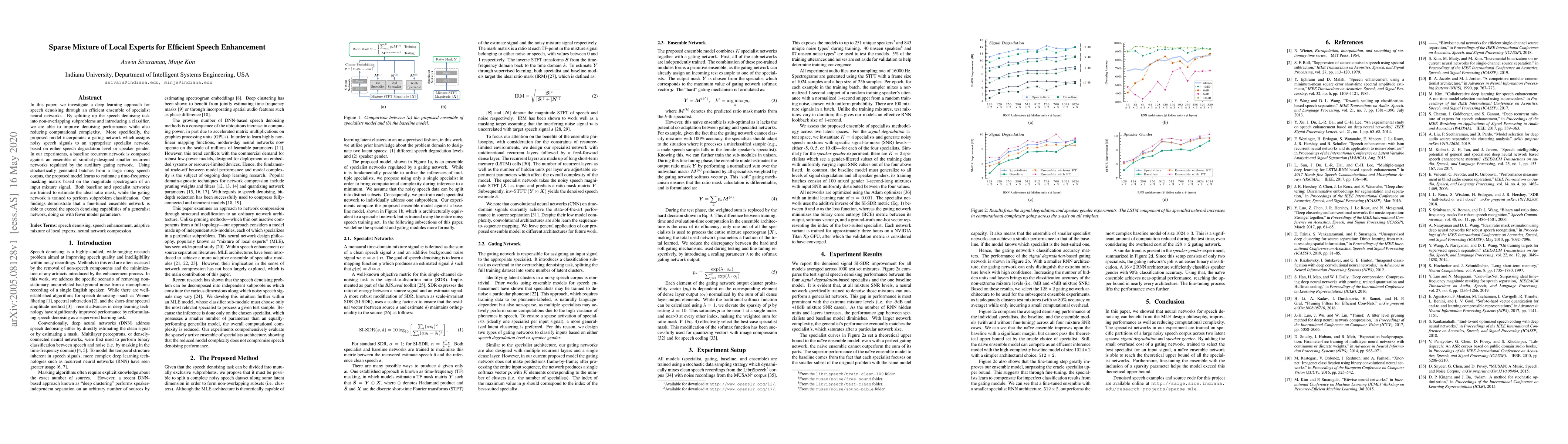 A new approach to speech denoising uses a combination of smaller neural networks to improve efficiency and performance. The model outperforms a single generalist network with fewer parameters.